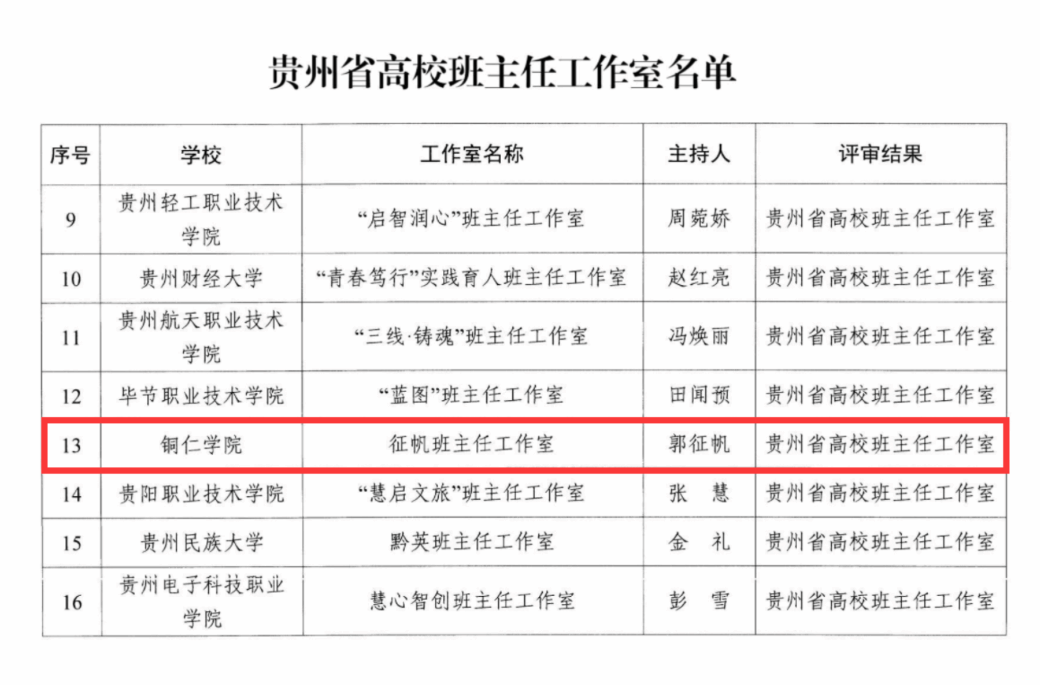 我院“征帆班主任工作室”入选 贵州省高校班主任工作室