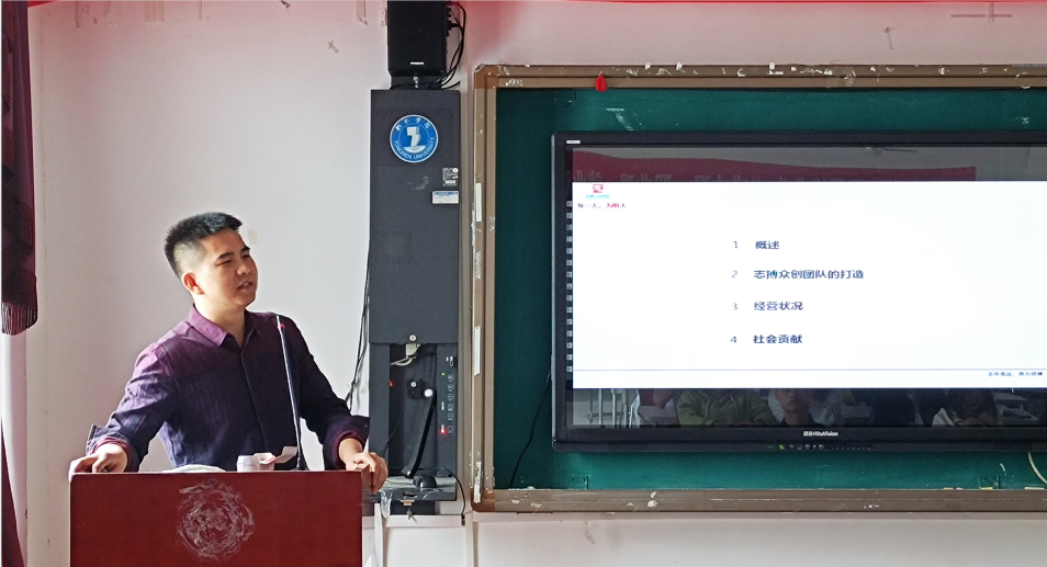 活动中,代厚兵向大家介绍了自己的创业经历,也分享了自己的心路历程。他表示,自己的创业历程并不是一帆风顺的,是伴随着努力和挫折的行程。代厚兵还向同学们分享了他们团队的打造,并用自己的人生格言勉励大家。他希望同学们都能够树立终身学习的观念,提高职业必备素质和技能,调整自己的创业心理,增强自己的社会经验,在未来可以顺利地创业、择业、就业,成长、成才,实现自己的人生价值和社会价值。