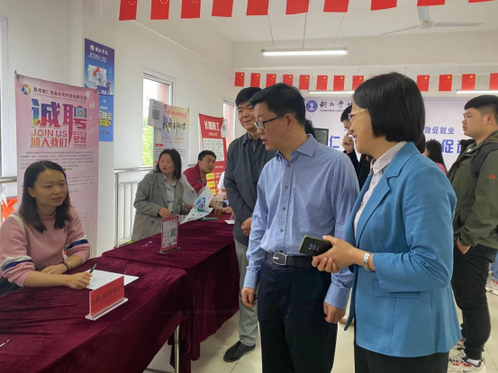 5月19日上午,由我院组织承办的beat365英国官方网站2021届毕业生现场招聘会在beat365大学生创新创业孵化基地举行。在招聘会进行过程中,校党委书记朱洪波、副校长罗静、校招生就业处负责人及我院党委副书记、学生科负责人以及2021届毕业班班主任到现场与招聘企业、毕业生进行交流。