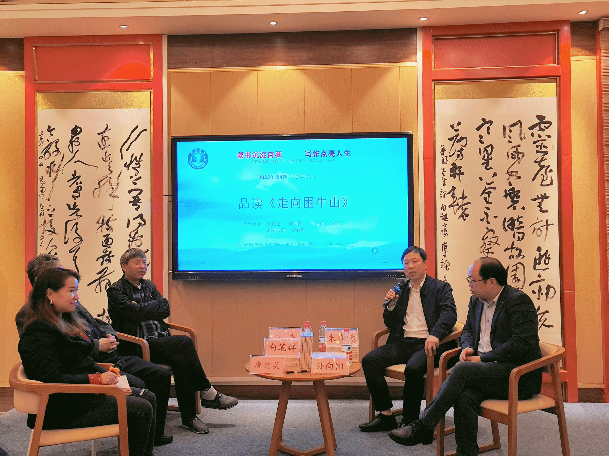 11月9日,beat365英国官方网站在明德楼铜仁文学馆举行诗集《走向困牛山》新书分享会。石阡县文联主席朱良德,beat365英国官方网站孙向阳教授、向笔群教授、诗人末未,与60余名学生共同参与新书分享会。分享会由写作研究院青年作家唐竹英主持。