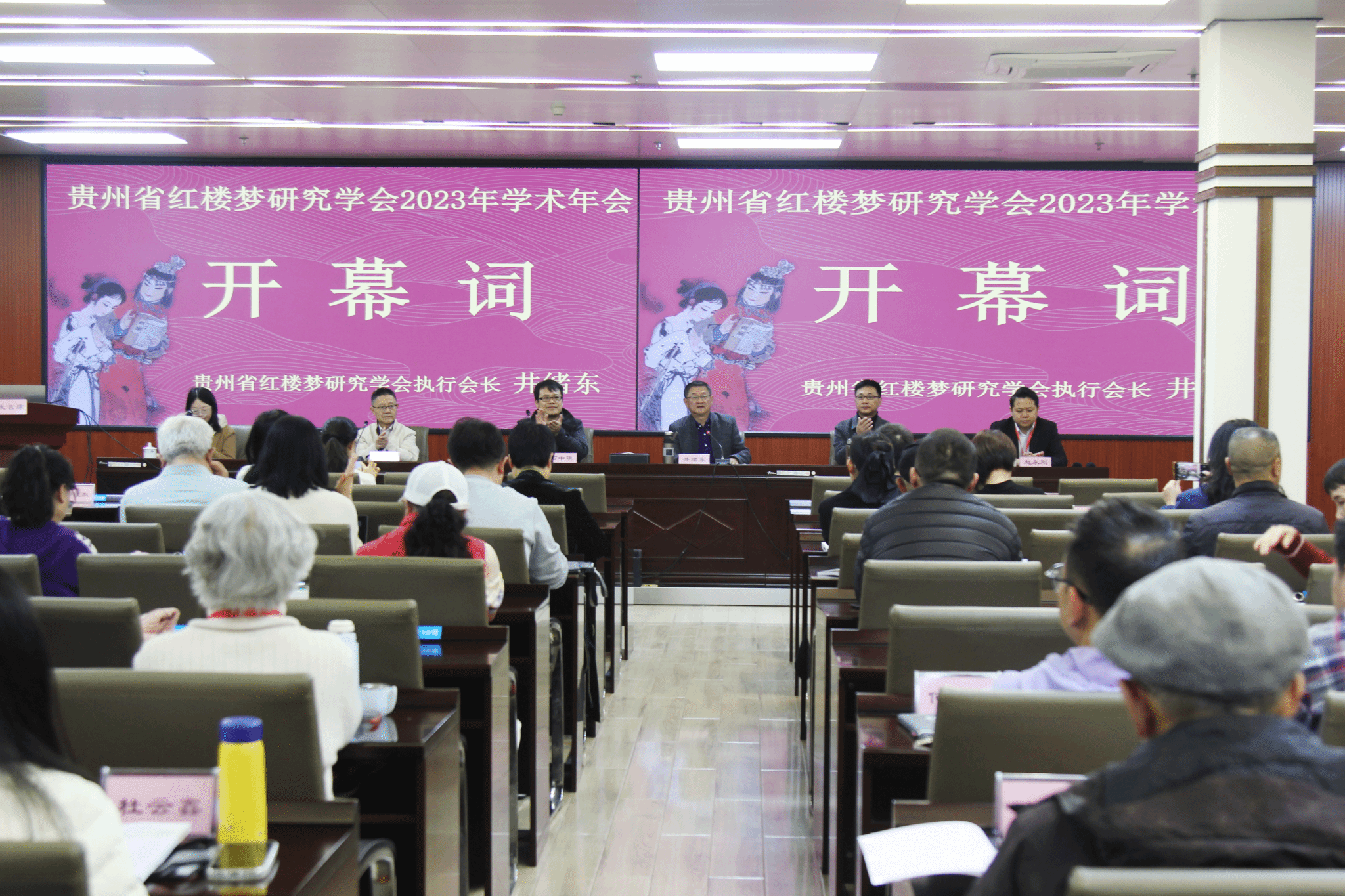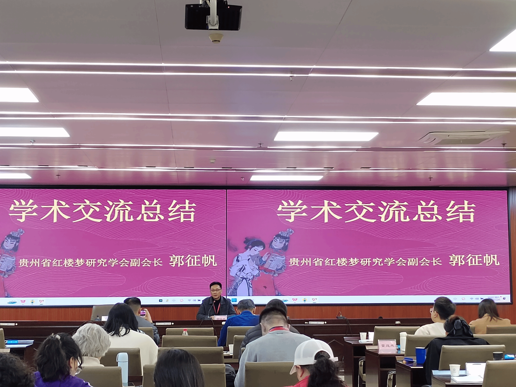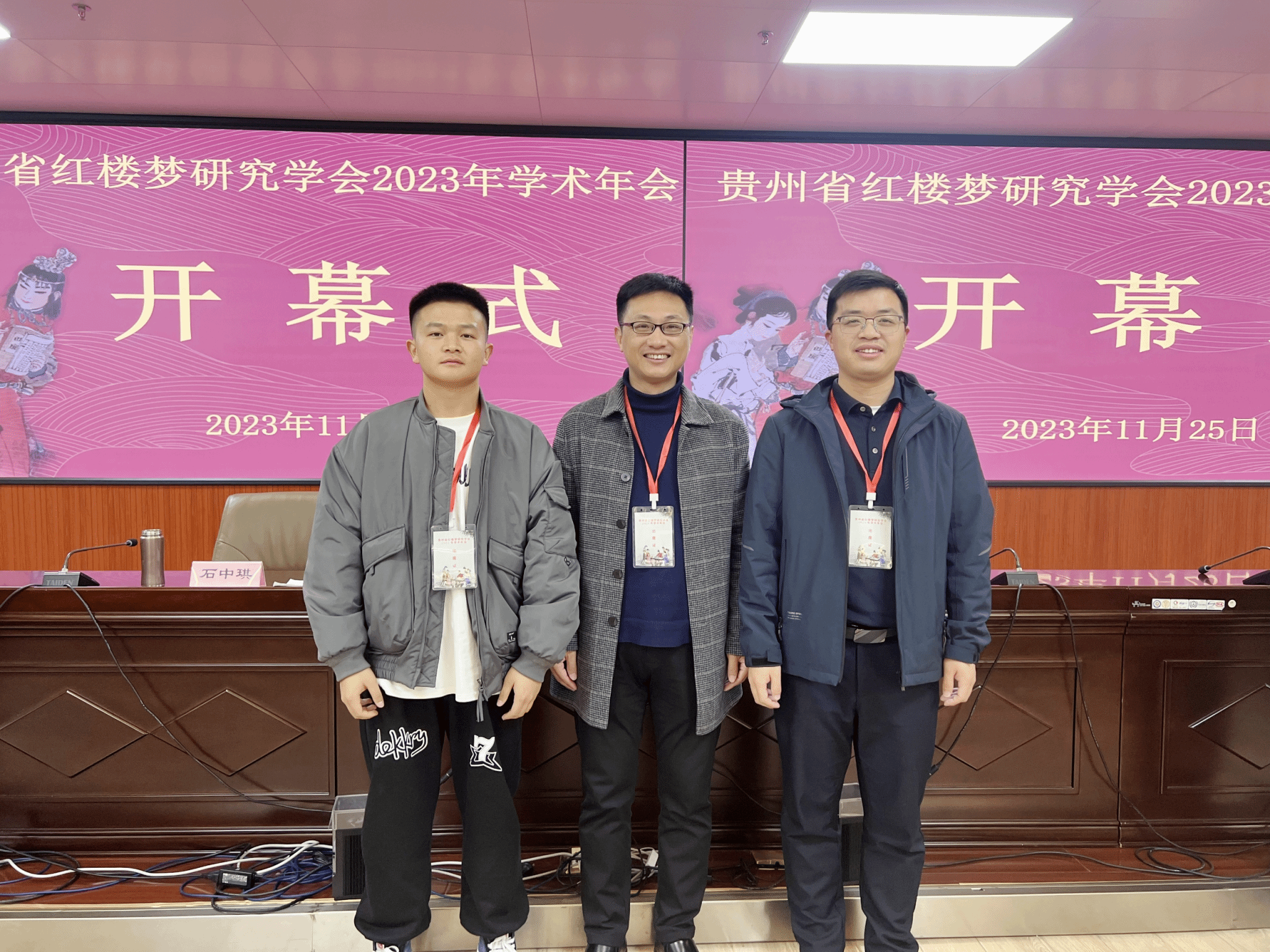 贵州省红楼梦研究学会2023年学术年会11月25日在贵阳举行,beat365英国官方网站文学与传媒学院副教授、中国红楼梦学会理事、贵州省红楼梦研究学会郭征帆,文学与传媒学院青年教师龙光海博士,文学与传媒学院2021级秘书学班学生、贵州省大学生创新创业训练项目《贵州红学研究辞典》主要负责人滕友松应邀参加了会议。