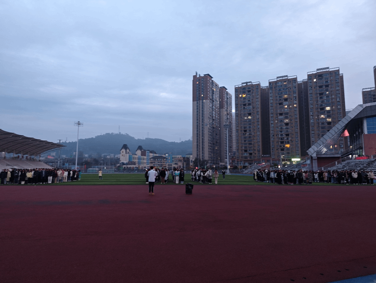 12月4日清晨,文学与传媒学院全体学生于足球场隆重举行升旗仪式并开展晨读活动。