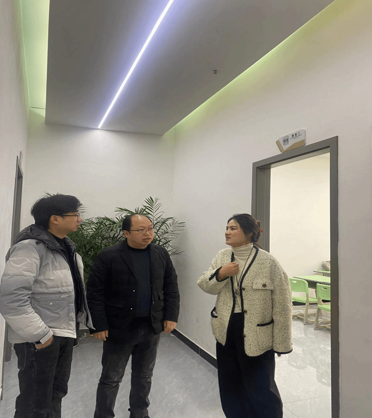 首先,孙向阳一行参观了985文化艺术托管学校的教学环境。在交流过程中,孙向阳听取了托管学校校长王芑心和校区负责人刘伊杰介绍学校的发展历程、市场范围等情况。王芑心表示,当下教育行业不仅要求从业者有过硬的专业素养,更要有与社会接轨的综合能力,实用性是企业对从业者的一大要求。在教师招聘方面,前几年由于对地方院校毕业生不了解,企业舍近求远,花费大量时间与精力在外地寻找人才,今后可在我院优秀毕业生中进行选拔,以增加师资力量。
