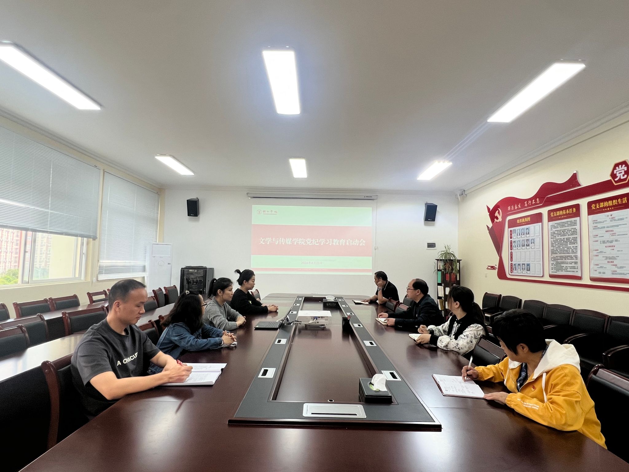 4月22日,文学与传媒学院党委在院会议室召开扩大会议启动部署党纪学习教育。院党委书记、院长孙向阳,党委副书记杨雪,党委委员、副院长张建刚、蒋小红出席会议,各科室、系和党支部负责人参加会议。