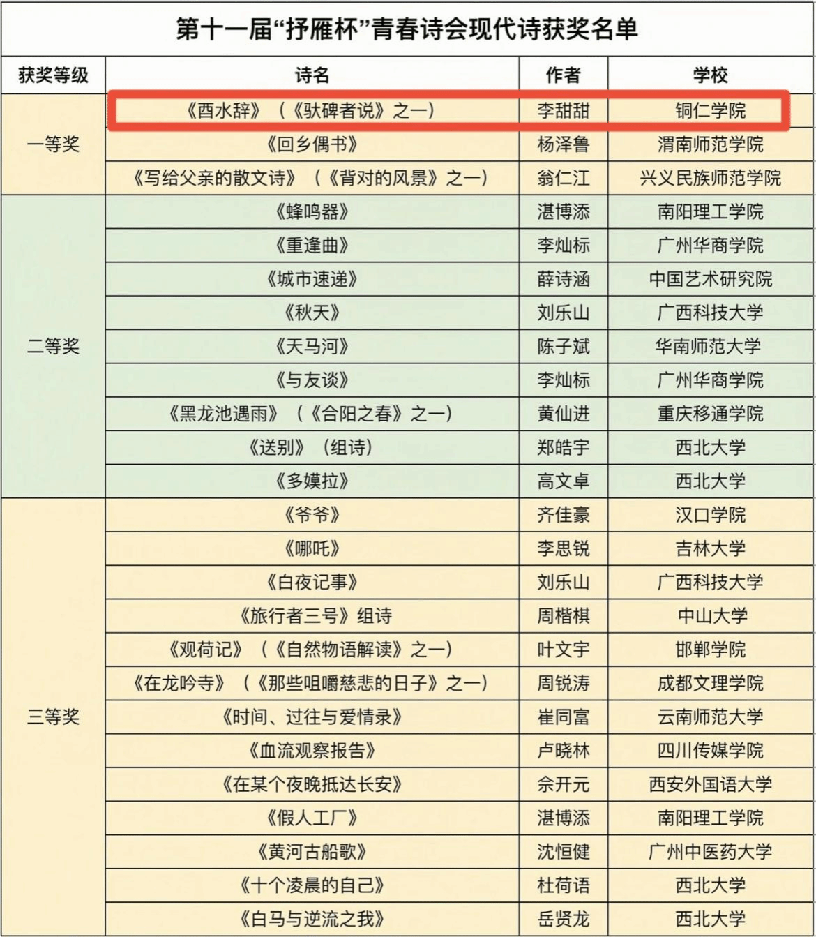 6月6日,第十一届“抒雁杯”青春诗会暨全国大学生诗歌大赛获奖名单正式揭晓,beat365英国官方网站文学与传媒学院2020级汉语言文学专业学生、晨光文学社社员李甜甜的诗歌《酉水辞》(《驮碑者说》之一)从千余首优秀诗歌参赛作品中脱颖而出,斩获现代诗一等奖。