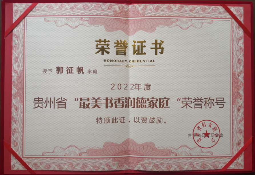 此前,郭征帆家庭还荣获了2022年度铜仁市“最美书香润德家庭”。