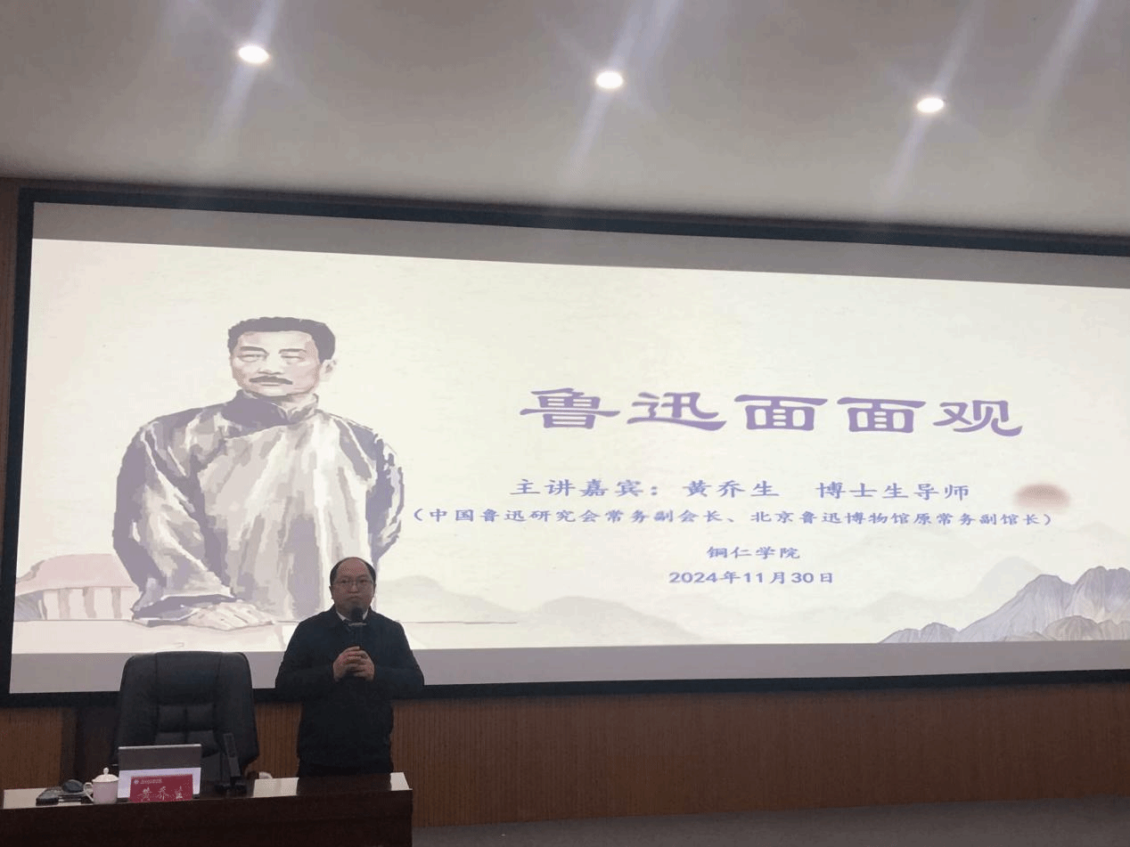 11月30日,中国鲁迅研究会常务副会长、北京鲁迅博物馆原常务副馆长、中国人民大学博士生导师黄乔生先生,应邀来我院为师生作了一场题为《鲁迅面面观》的学术讲座。这是文学与传媒学院“文化大讲堂”系列讲座的第六期。讲座由学校教务处处长、文学与传媒学院院长孙向阳主持。