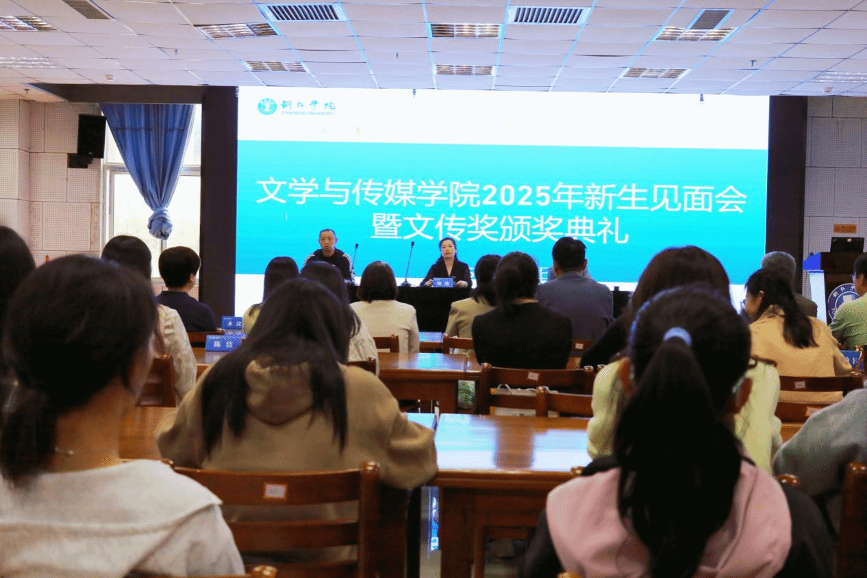 9月22日下午,文学与传媒学院在图书馆现刊阅览室举行了2025年新生见面会暨文传奖颁奖典礼。院党委书记杨艳、党委副书记杨雪、副院长张建刚出席,全院教职工和2025级全体新生共计260余人参加了见面会,会议由党委副书记杨雪主持。