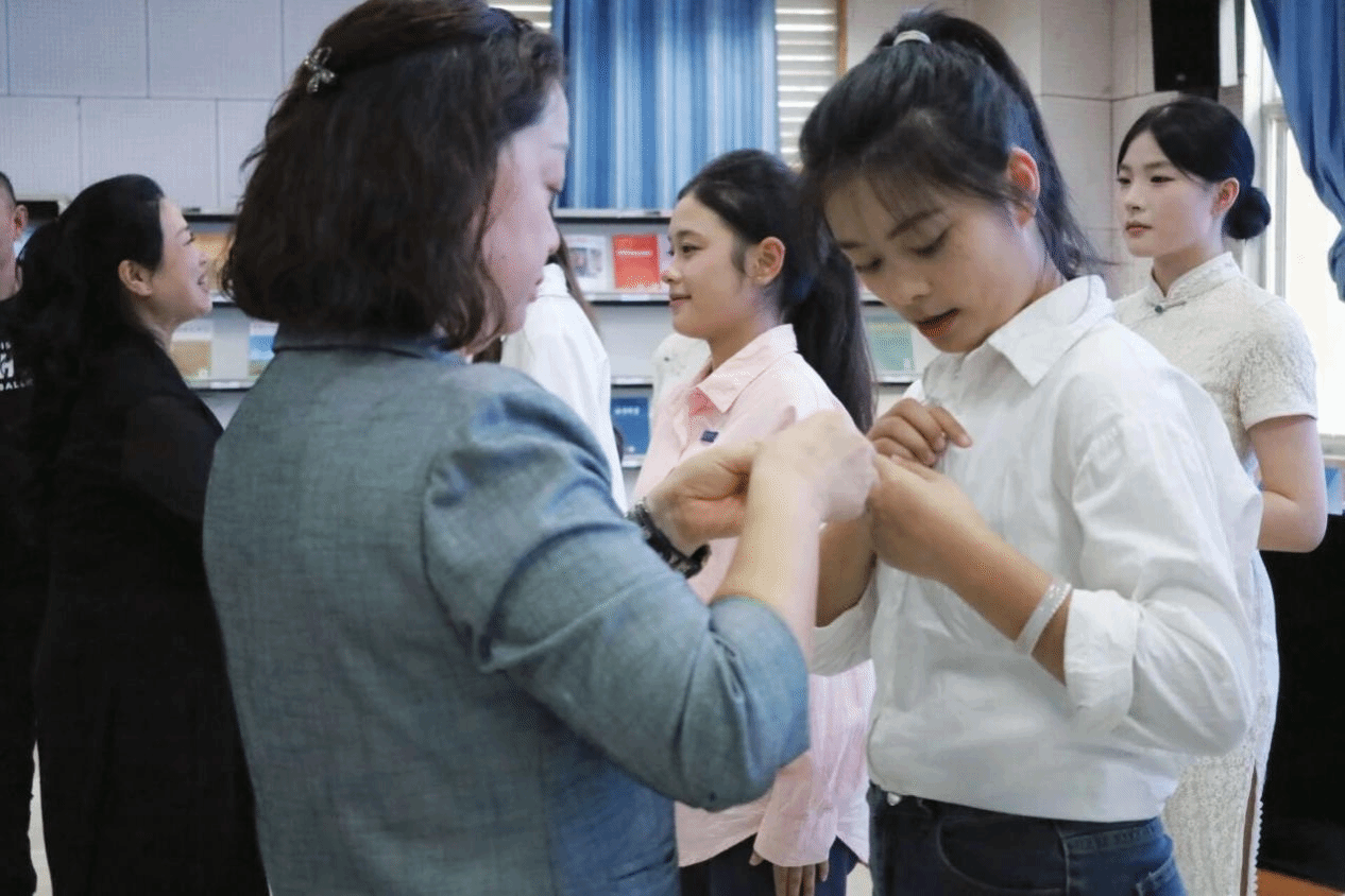 见面会上,还举行了学院徽章佩戴仪式。与会的院领导为2025级新生代表佩戴了文学与传媒学院院徽,对他们的到来表示热烈欢迎。