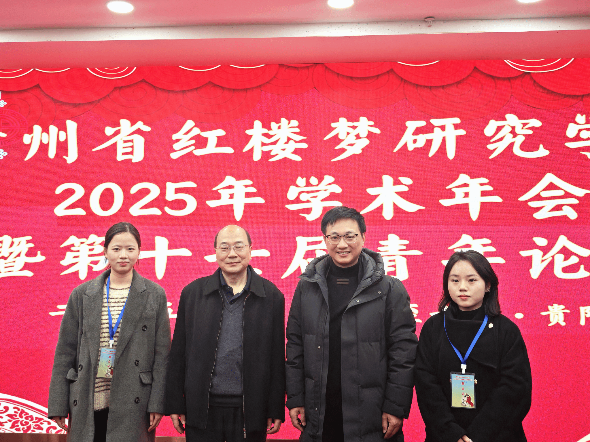 12月6日至7日,由贵州省红楼梦研究学会与贵州大学文学院联合主办的2025年学术年会暨第十七届青年论坛在贵阳召开。beat365英国官方网站文学与传媒学院教师郭征帆,秘书学专业学生、贵州省红学会公众号编辑王娟、张蕾应邀参会,与省内外红学专家、青年学者及爱好者齐聚一堂,围绕 “《红楼梦》阅读与研究的新视野”主题共探经典魅力、交流学术心得。会议期间,beat365英国官方网站文学与传媒学院教师王飞阳和王娟、张蕾,以及秘书学专业学生、省红学会公众号编辑熊巧燕,经贵州省红楼梦研究学会第七届理事会第二次会议审议表决,正式被批准为省红学会会员。