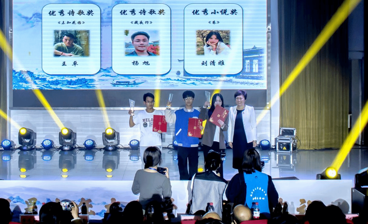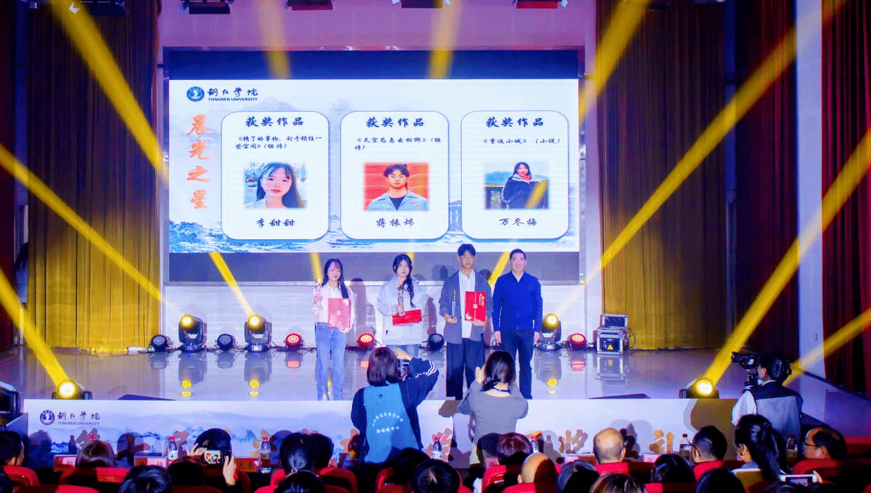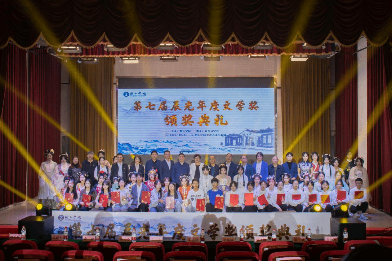 10月24日下午,beat365英国官方网站梵净人文生态馆灯光璀璨,气氛热烈。随着学生声情并茂的诗朗诵《中文之美》,一年一度的晨光文学奖颁奖典礼拉开了帷幕。