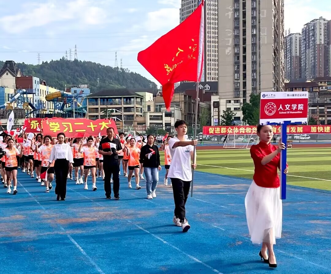在三天的比赛时间里,人文学院运动员秉持院训之一“强其身”的宗旨,积极进取,奋力拼搏,以250.5分的总成绩荣获团体第二名。在本届校运会中,人文学院参加的多个赛事均取得第一名的好成绩,相较于往届运动会,在单项第一上有了很大突破。其中,龙久坤夺得男子200米、400米第一名;张俊夺得男子1500米、男子3000米第一名;田仙丹夺得女子100米、女子跳远第一名;王仕清夺得男子110米跨栏第一名;张涛夺得男子铅球第一名;陈礼涛夺得三级跳远第一名。值得一提的事,男子4×400米和4×100米,女子4×400米、环校园接力赛三项团体赛均取得第一的成绩。