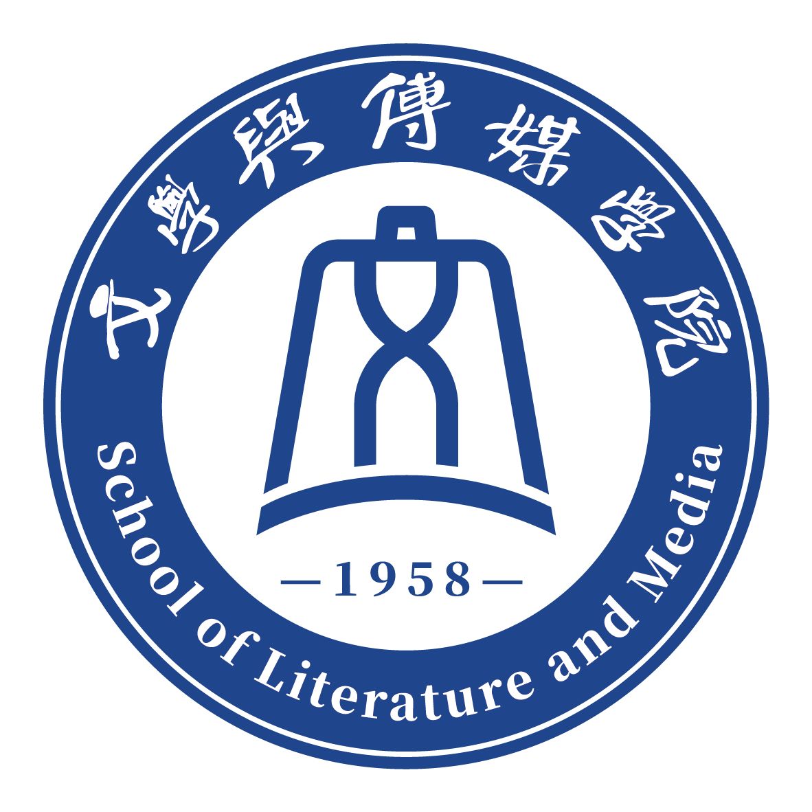 1.院徽内圈,以曾乙侯墓编钟为设计原型,有文化厚重、声名远播之意。编钟由“文”字变形成为古钟状而成,与“文”相结合,既有坚守文学传统、弘扬古今中外优秀文化之初心,更暗含通过“编钟”媒介传播弘扬人文精神之意蕴。院徽上“1958”字样,为文学与传媒学院的最早建院时间,彰显了办学历史的悠久与厚重。