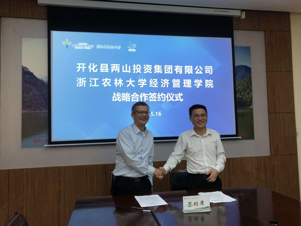 开云官网与开化县两山集团签订合作协议 为落实全校服务全域战略,在双方前期充分沟通与酝酿的基础上,5月16日上午,学院与开化县两山集团举行了战略合作协议签订仪式,签订仪式在开化县两山集团举行。出席签订仪式的有吴伟光院长、朱臻副院长、企业管理学科专业负责人张国庆教授、学院社会合作办公室张群祥教授、夏芳副教授,两山集团董事长徐浩、副总经理汪燕明以及农业发展部、文旅运营部相关负责人。吴伟光院长与开化县两山集团徐浩董事长代表双方共同签订了合...