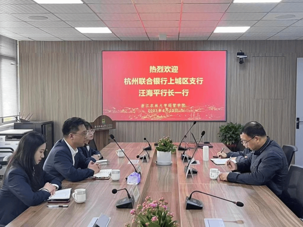 开云kaiyun官方网站与杭州联合银行上城区支行洽商合作 4月13日,杭州联合银行上城区支行汪海平行长一行赴开云kaiyun官方网站洽商银企合作。开云kaiyun官方网站党委书记周凯以及国际商务专硕学位点负责人、生态文明研究院办公室主任钱志权参与洽谈。 学院党委书记周凯对汪海平杭州一行的到来表示热烈的欢迎,并介绍了学校办学历史、学院学科专业发展现状。汪海平行长介绍了杭州联合银行历史沿革和主要业务情况。双方就建设本科实践教学基地、国际商务研究生工作站、党建联建、绿色金融研究与...