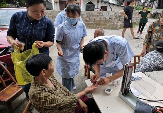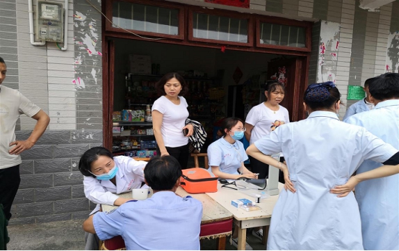 为落实基层医疗卫生服务,同时强化师生党建工作,2020年6月1日下午,beat365英国官方网站大健康学院党委书记张艳丽带领护理健康系师生十余人走进坞坭社区为居民免费义诊。
