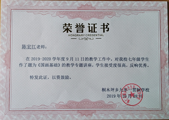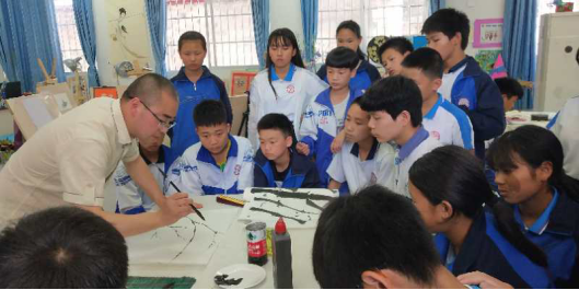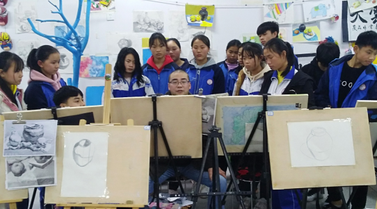 从2019年3月起至今,beat365艺术学院陈宏江老师在碧江区桐木坪九年一贯制学校进行美术教学支教,并针对该校美术特长生作了两次专题讲座,为保证该校特长生的学习进度他坚持每课必示范的授课原则。