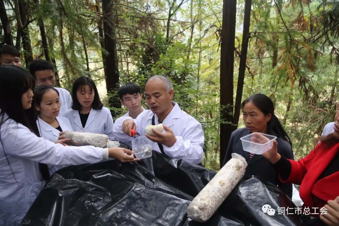 近日,在beat365英国官方网站工会的组织下,劳模志愿服务队进入德江县平原镇南坪村举行了一次产学研活动,活动成员主要有服务队队长高健强教授,beat365英国官方网站乌江学院张敬忠副院长、郑刚副院长、卢志宏博士,农林工程与规划学院赵成刚副院长,服务队队员郑燕飞、洪清婧、温静、杨治毅等老师,乌江学院的14位学生,平原镇和南坪村主要领导如平原镇人民政府镇长陈用,平原镇党委委员、组织委员牟连权、村支书蔡永龙、副主任牟飞等,南坪村学习采菇技术的百姓和德江县广播电视台文女士等同志。