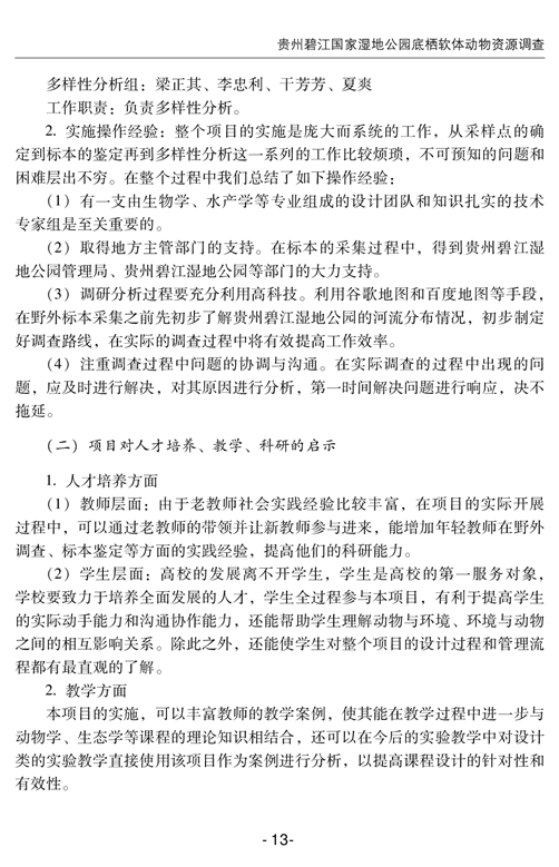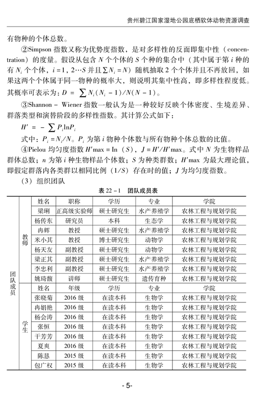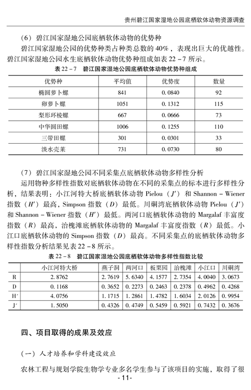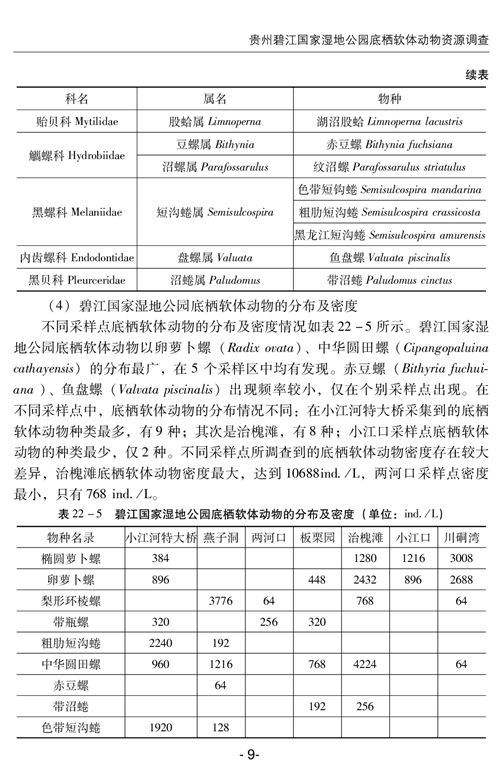 贵州碧江国家湿地公园底栖软体动物资源调查