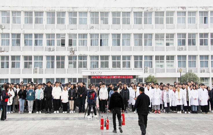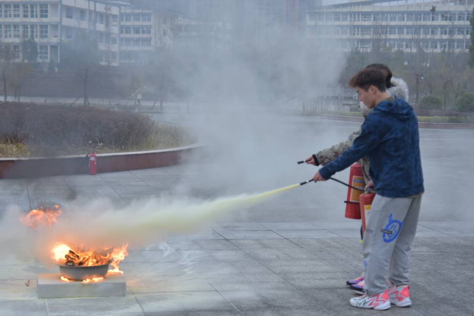 最后进行的是灭火演练。负责演练的工作人员在实验楼外的开阔地带燃起明火,由在场的专业人员讲解灭火器的使用流程。认真学习相关知识后,在场的部分师生依次排队,使用灭火器进行灭火操作,在实践操作中掌握灭火器的使用方法及灭火技巧。