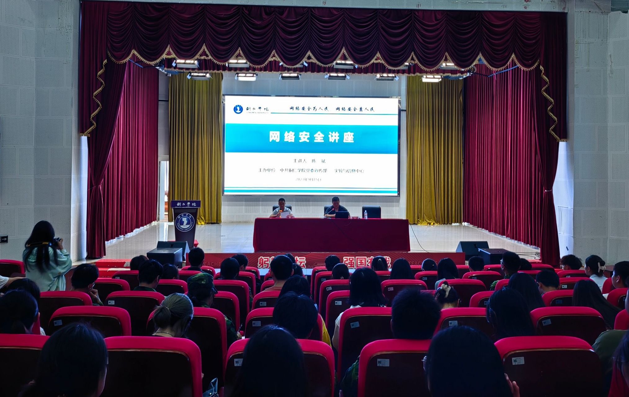 9月11日至17日是2023年国家网络安全宣传周,主题是“网络安全为人民,网络安全靠人民”。 为切实提升师生的网络安全意识,筑牢网络安全屏障,9月15日下午,实验与信息中心在人文生态馆举办了2023年网络安全专题讲座。邀请铜仁市公安局网安支队技保大队大队长,警务技术一级主管、市大数据专家陈斌主讲,信息中心副主任杨宇主持会议,各行政职能部门和二级学院网站管理员、应用系统管理员、微信公众号管理员及二级学院各班班长聆听了讲座。