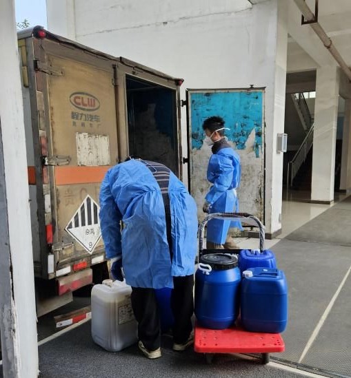 在此次处置工作中,危化品处置与安全应急中心的工作人员甘佳慧、杜婷婷与各学院实验室实验员紧密协作。他们严格依照规范要求,对废酸类、废碱类、有机溶剂、有毒重金属及其混合物、实验室废试剂、废物沾染物(包括空瓶、医废)以及过期药品等,进行了细致分类收集、规范包装处理,并清晰标注各类废弃物的信息。完成前期准备工作后,学校委托贵州义昌能源开发有限公司对这些危险废弃物进行无害化处置。在整个过程中,工作人员全程监督,从危险废弃物的收集、归类,到搬运、装车,每一个环节都严格把关,确保数量精准无误、全程安全可控,杜绝任何泄漏风险。