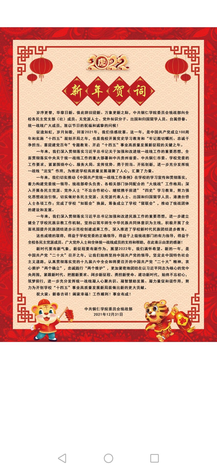 校党委统战部2022年新年贺词