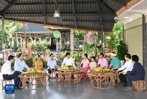 12月17日至19日,中共中央政治局常委、全国政协主席王沪宁在云南西双版纳、玉溪、昆明调研。这是12月17日,王沪宁在西双版纳傣族自治州景洪市曼景罕居民小组看望傣族群众,并同当地干部群众交流。新华社记者 饶爱民 摄
