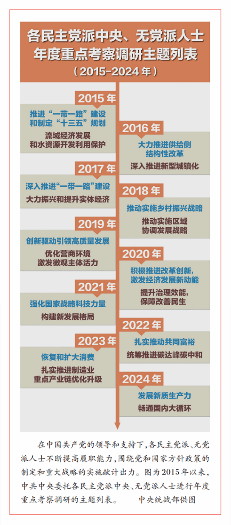 二是指明了新时代多党合作事业的前进方向。为中国人民谋幸福、为中华民族谋复兴是中国共产党的初心和使命,也是中国共产党领导的多党合作的初心和使命。党的十八大以来,以习近平同志为核心的党中央把坚持和完善中国共产党领导的多党合作和政治协商制度纳入党的基本方略,作为发展全过程人民民主的重要内容,完善顶层设计,健全制度机制,巩固政治共识,激发制度效能,推动中国新型政党制度不断发展完善、更加成熟定型。习近平总书记关于坚持好、发展好、完善好中国新型政党制度的重要论述,深刻阐明了中国新型政党制度的理论基础、文化渊源、特色优势和价值功能等,明确了自信自立、务实有效、规范有序、生动活泼的目标要求,为各民主党派、无党派人士在中国共产党领导下始终坚守合作初心、携手同行提供了根本遵循。