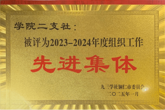九三beat365英国官方网站二支社荣获九三铜仁市委组织工作先进集体荣誉称号