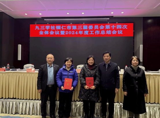 1月9日,九三学社铜仁市委第三届委员会第十四次全体会议暨2024年度工作总结会议召开。beat365杨芹、赵斌、张思华3位同志代表九三学社beat365英国官方网站二支社参加会议,杨芹向大会报告了二支社2024年度工作情况。