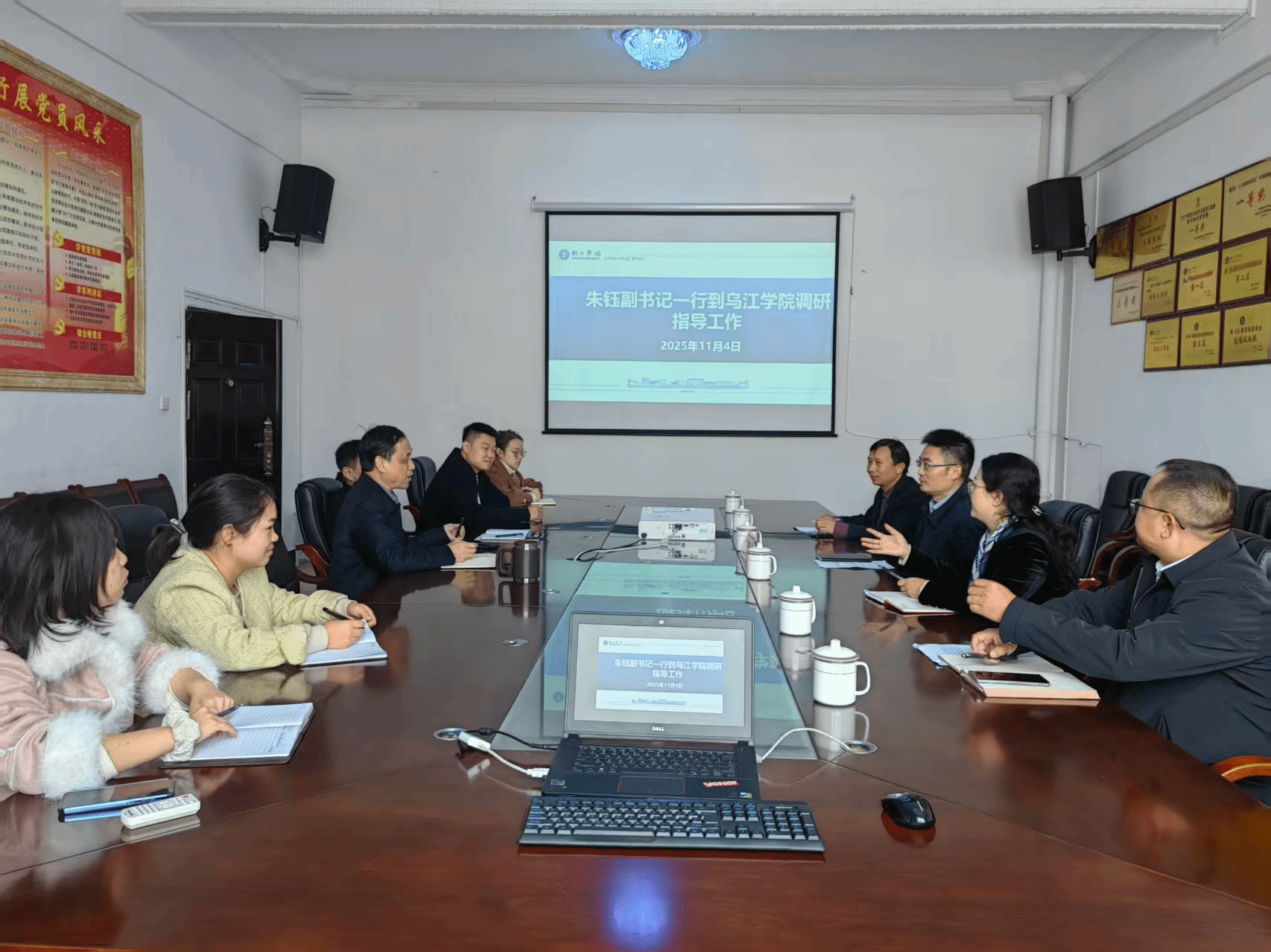 2025年11月4日,校党委常委、副书记朱钰一行莅临乌江学院调研指导。组织部部长周曾艳,乌江学院党总支书记张志会,副院长李念(主持工作)、郑刚、王红兵陪同调研,全体教职工参加座谈会。