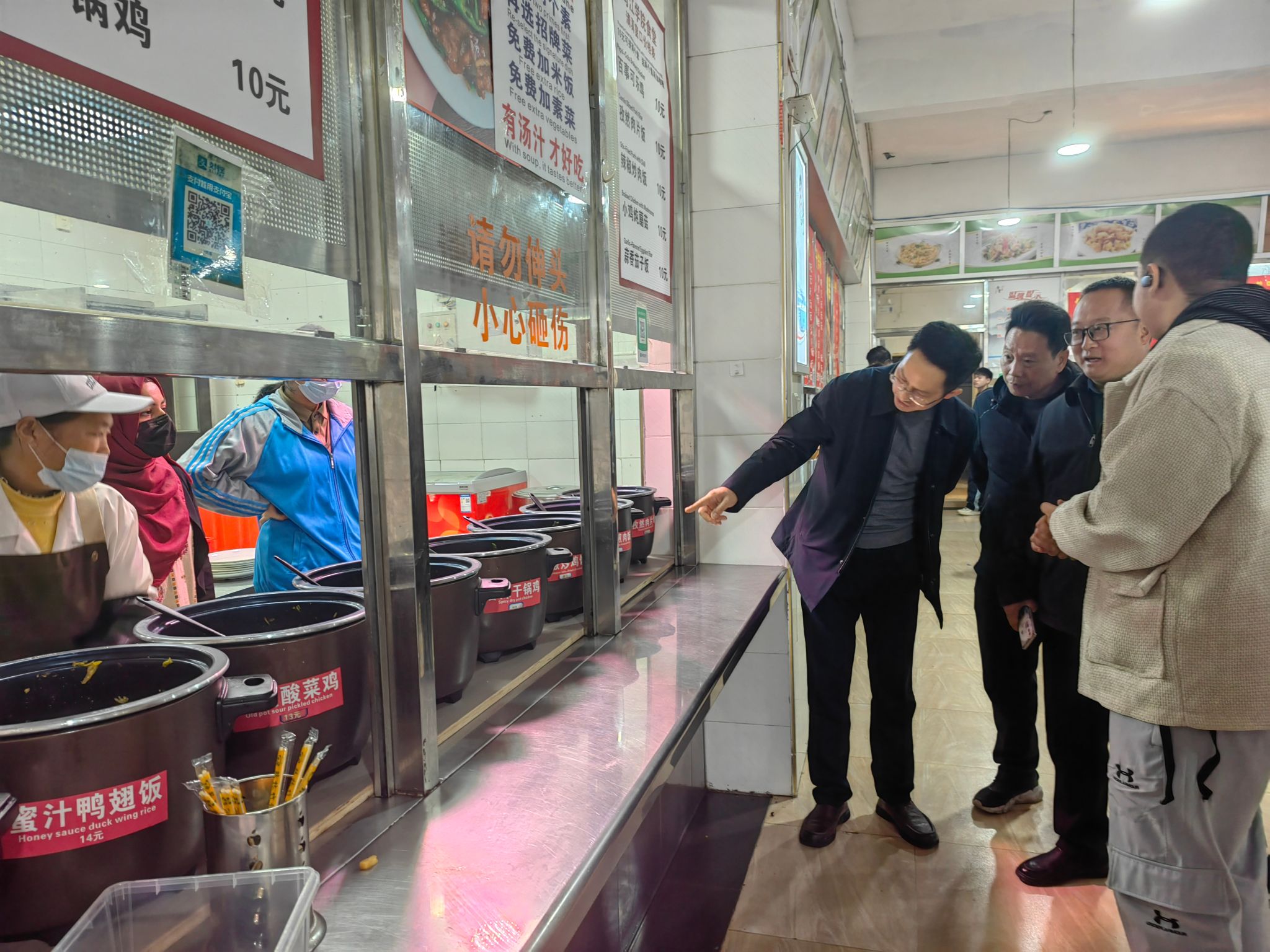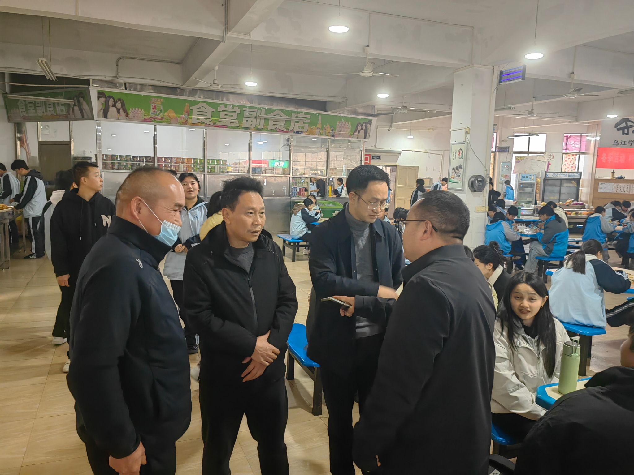 2025年12月12日上午,beat365英国官方网站后勤处鲁道旺处长、肖庭华副处长一行到乌江学院,实地走访乌江学院食堂,调研后勤服务保障情况,并与师生代表深入交流。