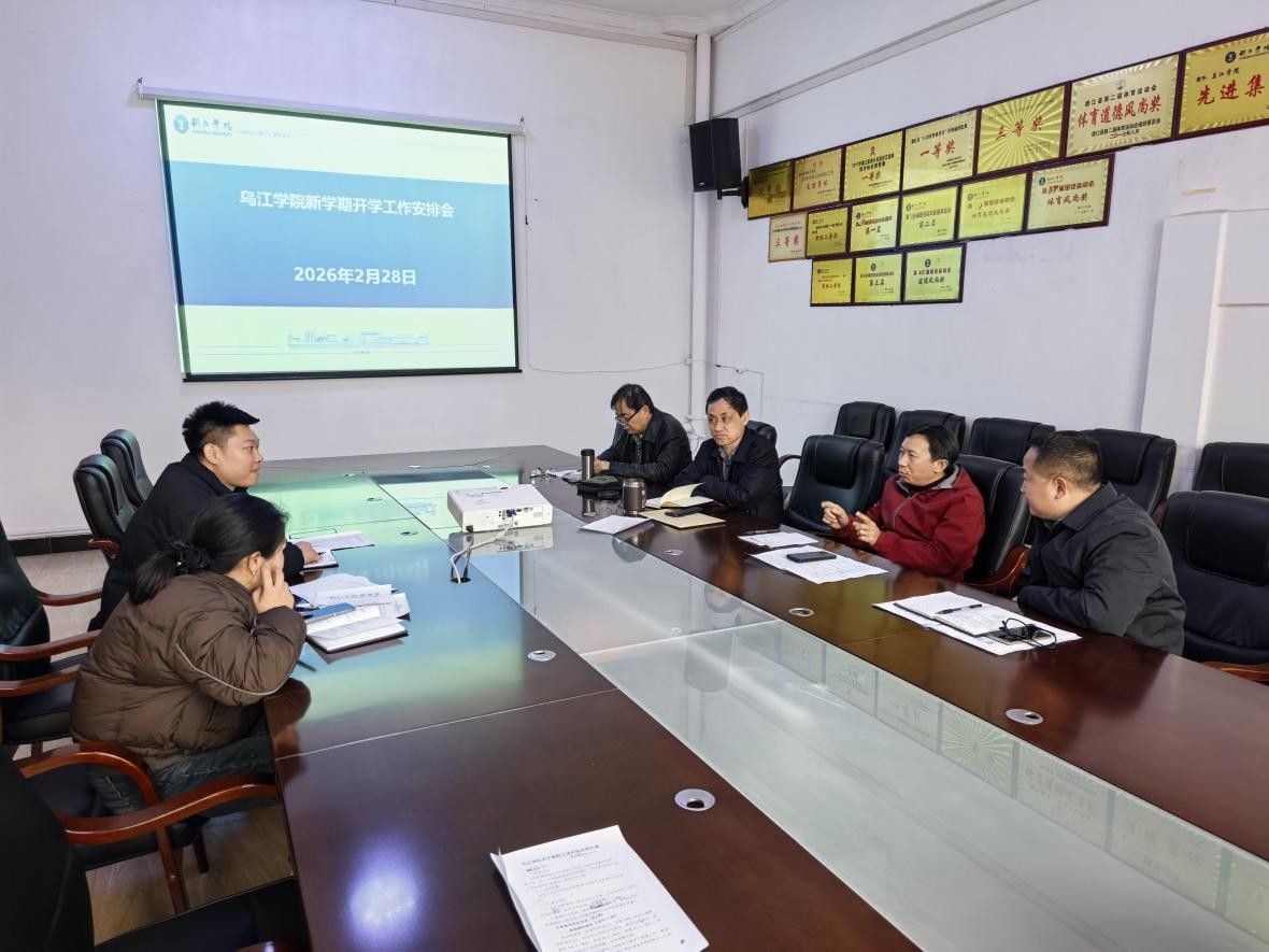 2026年2月28日,乌江学院组织召开新学期开学工作安排会议。院领导班子成员,各科室负责人参与会议。
