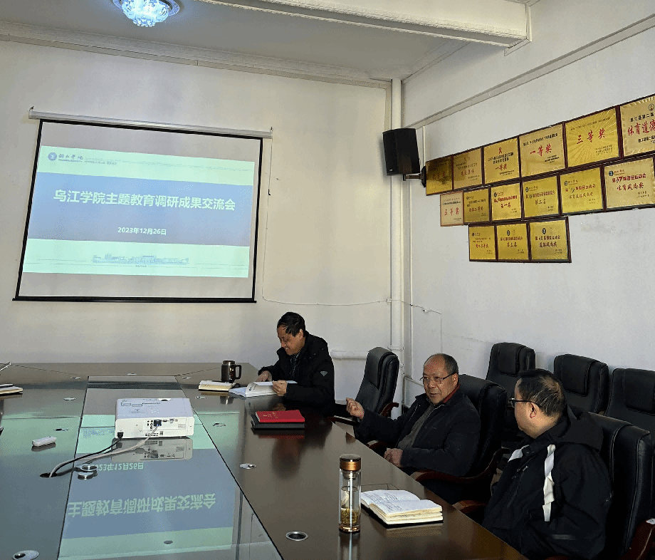 12月26日上午,乌江学院召开主题教育调研成果交流会,党总支书记邓崇权主持会议,院长张敬忠、副院长郑刚出席会议。