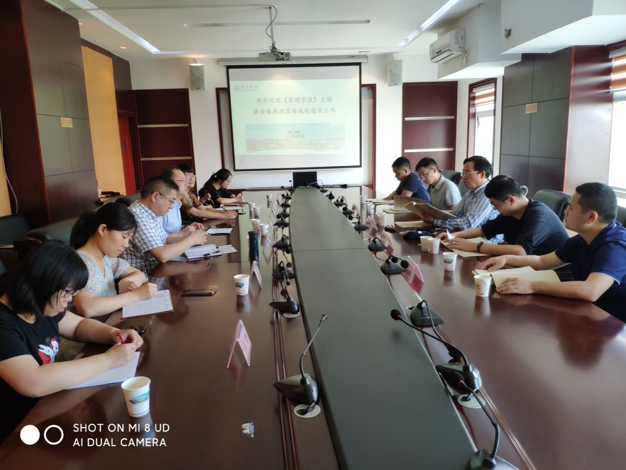 6月7日下午,《管理学报》主编张金隆教授一行莅临beat365指导工作,并就学报办刊相关工作,在行政楼8312会议室进行座谈交流。副校长石维、杨建,学报编辑部全体教职员工及《beat365英国官方网站学报》“经济学与管理学”栏目兼职编辑参加座谈。会议由学报分管副校长石维主持。