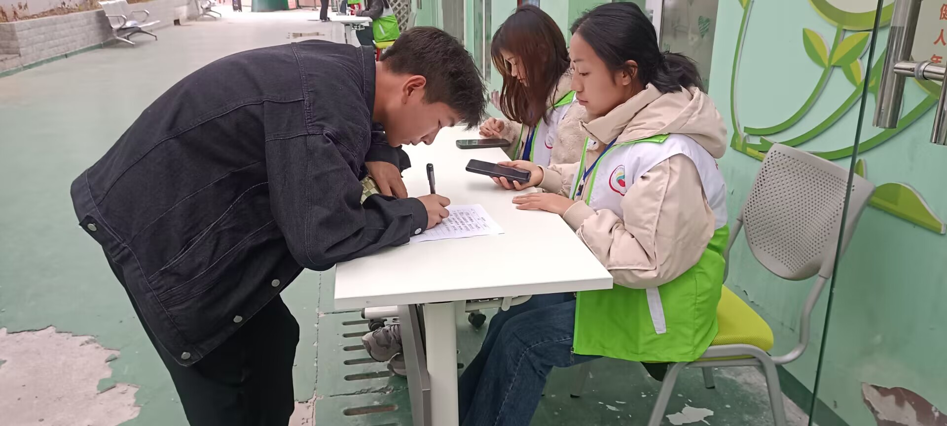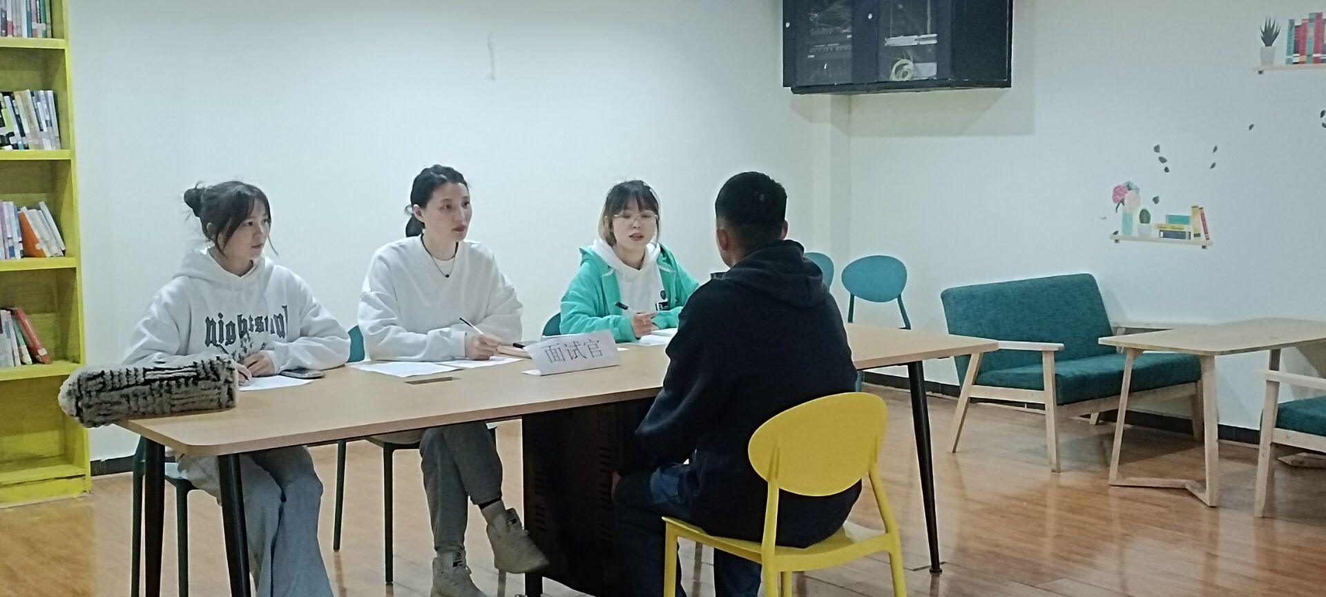 面试前我们工作人员早早做好了各个部门的面试场地的准备,以一个完美的状态迎接我们的每一个面试者。同学们陆续到达后,在工作人员的引导下有条不紊的完成相关信息的填写和排队候场。