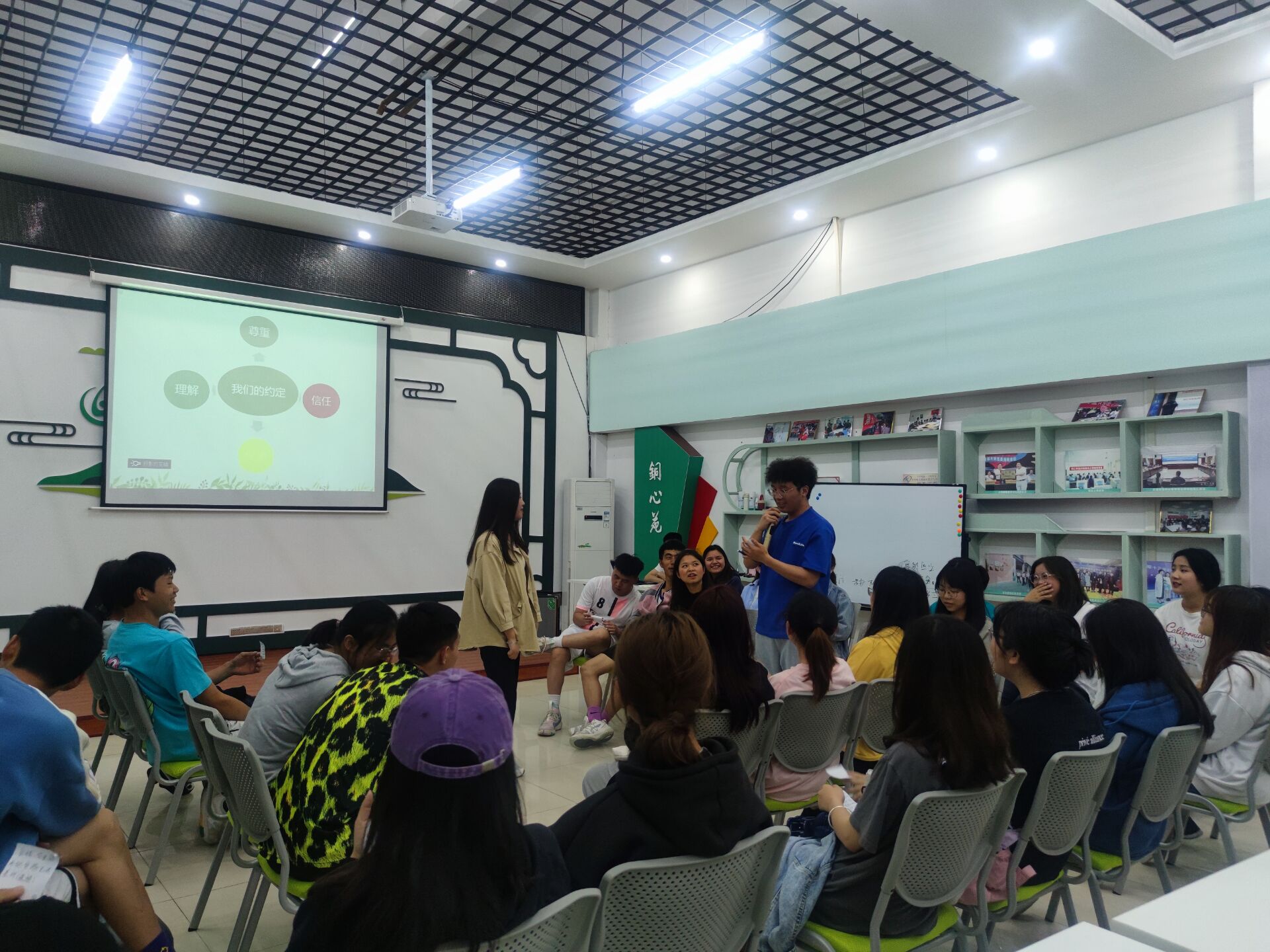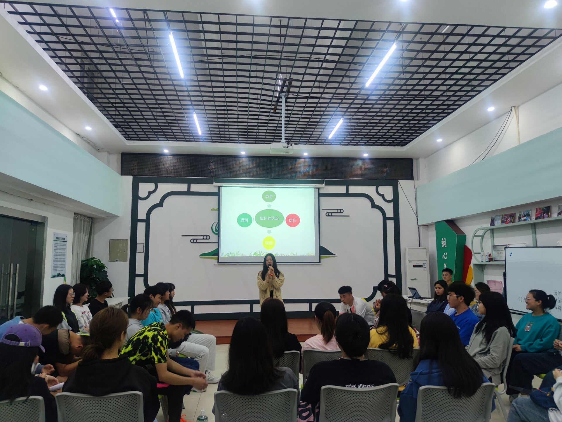 4月22日晚,beat365在心理健康教育中心多功能室开展了以《我和我的“疫情”大学》为主题的心理沙龙活动。此次活动由2021级数学1班的祖万欣同学主持分享,来自不同学院的50名同学共同参与。