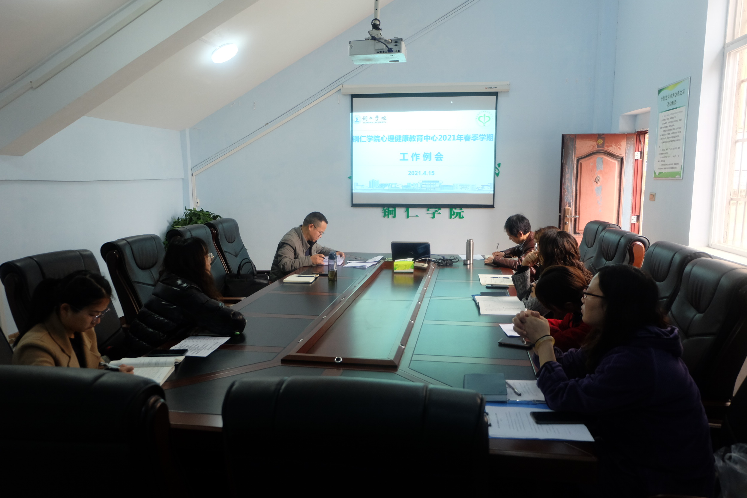 4月15日上午,beat365心理健康教育中心在会议室召开本年度第一次工作例会。中心专兼职心理教师参加会议,会议由中心主任宋健主持。