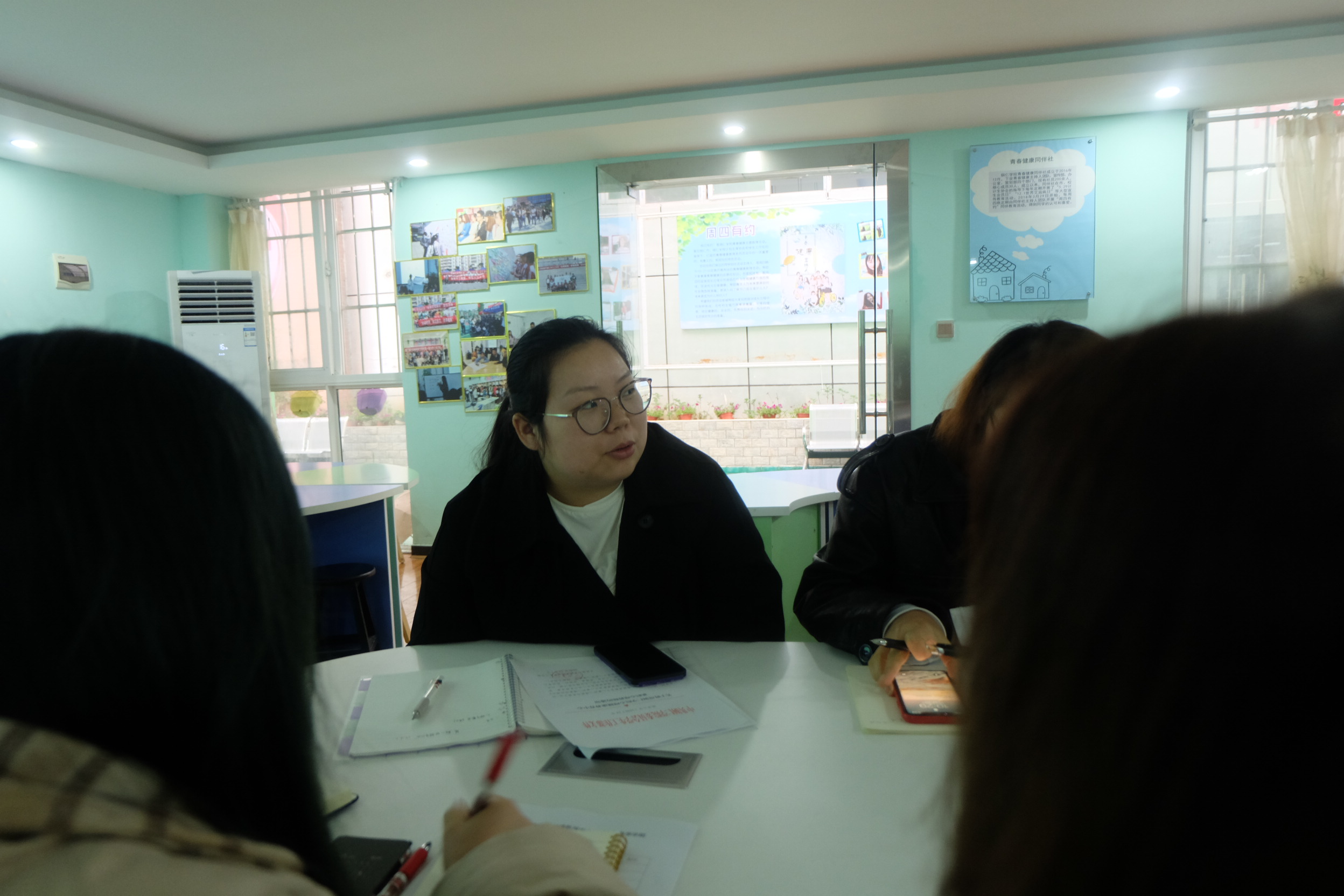 活动中,吴宛澐老师首先向大家分享了本院工作中队伍建设、谈心辅导、以及心理危机干预等工作的一些做法,并重点分享本学期本院一个因心理问题休学的学生的案例。随后,各学院心理辅导员分别就该案例作了交流发言,并就心理气象员、心理委员培训以及中心专兼职教师联系各学院等工作提出建议。