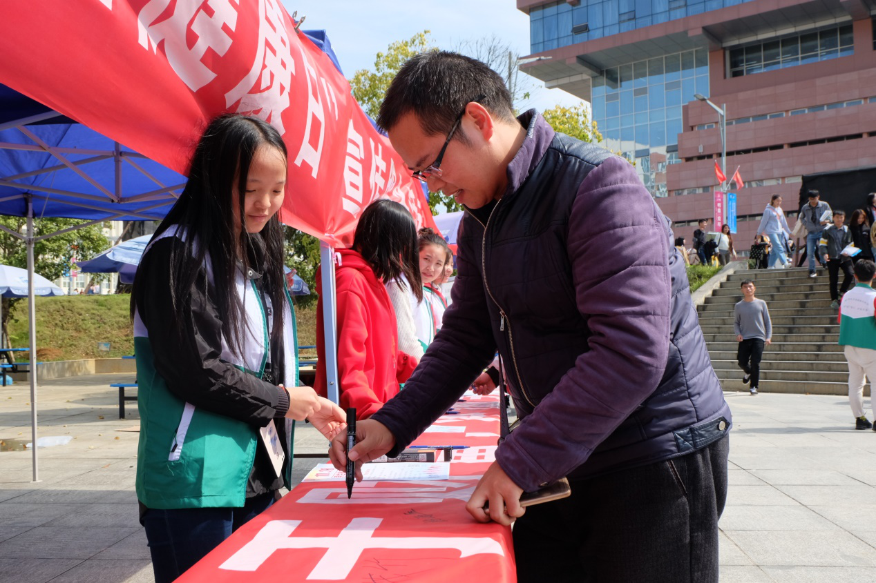 为更好的宣传和普及有关男性健康系列的科学知识,关心男性生理、心理健康。10月26日,由铜仁市计划生育协会主办、beat365英国官方网站学生工作处承办、beat365英国官方网站青春健康同伴社协办的“世界男性健康日”主题宣传活动在丹桂餐厅前广场成功举办。校心理健康教育中心主任宋健、专职教师夏冰月到活动现场参与指导。