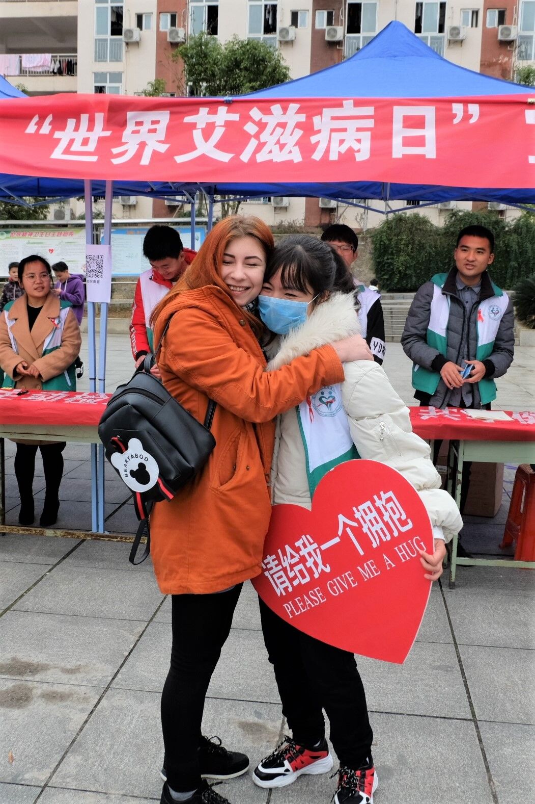志愿者现场呼吁拥抱