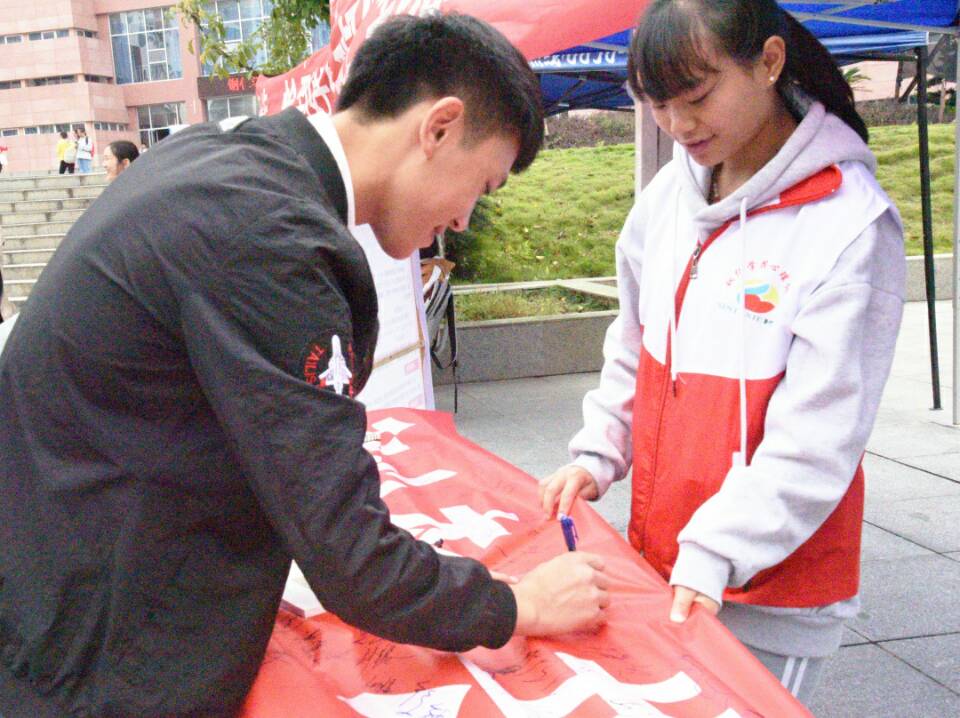 活动分为三部分,一是主题活动签名,二是现场采访,三是现场心理测试。活动现场通过布置健康教育宣传栏、悬挂横幅、发放宣传资料等多种形式,向广大师生宣传有关精神卫生知识、精神卫生日主题的意义,并倡导学校关注精神健康。其中,夏冰月老师来到现场慰问活动开展的情况和了解活动进展程度,夏老师还热情的为前来询问的同学们解答心理健康知识的问题。