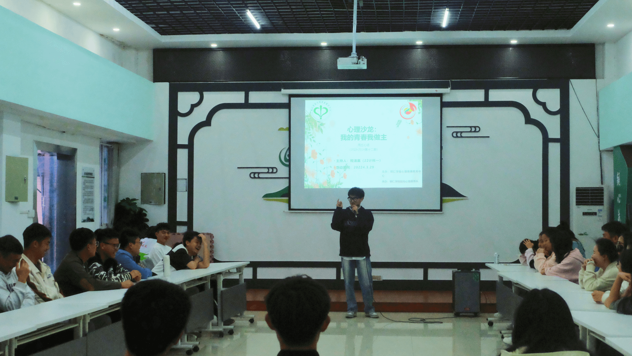 3月29日晚,beat365心理健康教育中心在多功能室开展了2023-2024学年第十二期周五心语活动——心理沙龙之“我的青春我做主”。此次活动由2022级计算机科学与技术班税清赢同学主持分享,共有40名来自不同学院的同学参加。