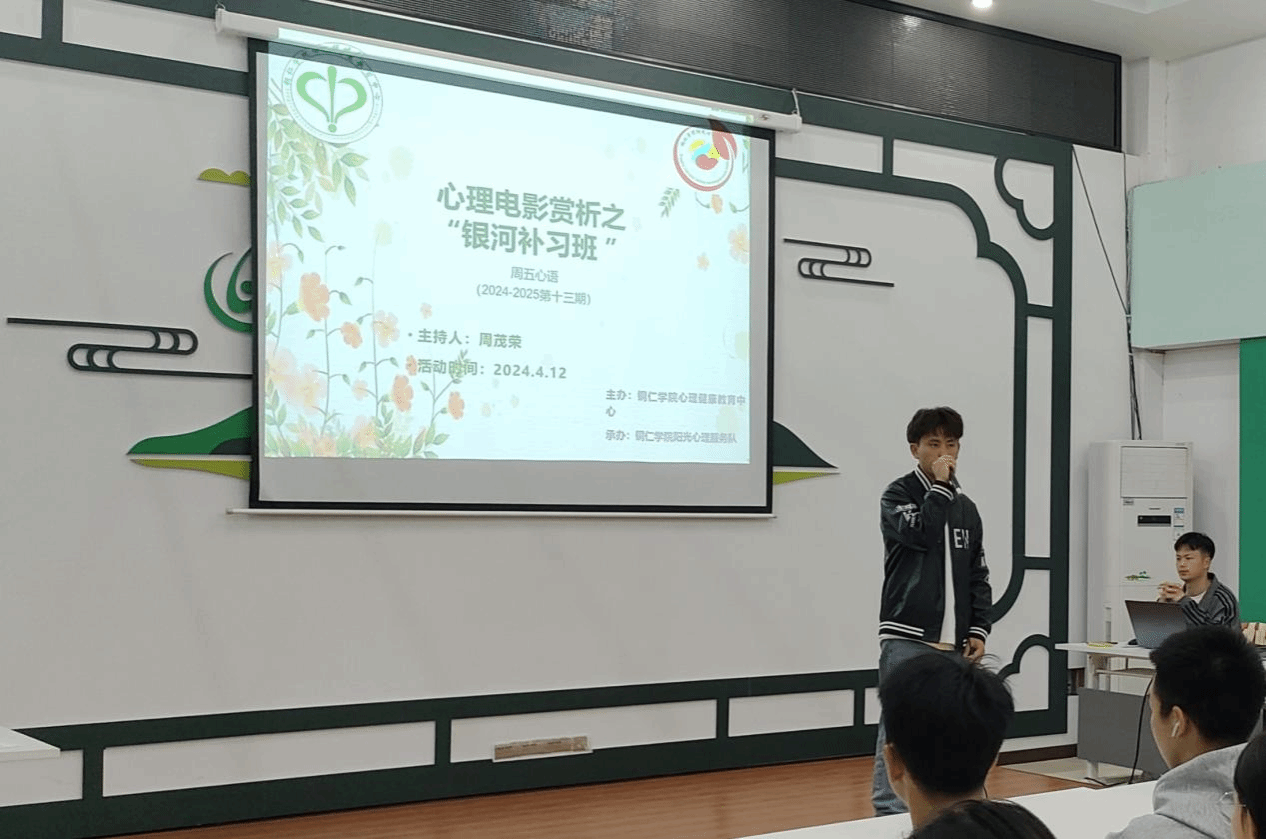 4月12日晚,beat365心理健康教育中心在多功能室开展了2023–2024第十三期周五心语活动——心理电影赏析之《银河补习班》。此次活动由2022级化学工程与工艺班周茂荣同学主持,共有50名来自不同学院的同学参加。
