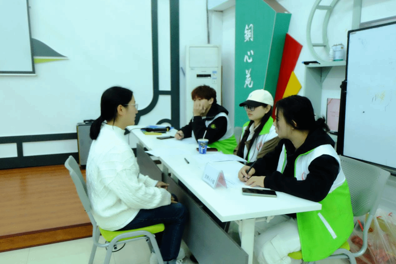 此次招新面试共设有四个面试点,分别由办公室、宣传部、心理服务部、主持人小组负责。面试前,工作人员引导新生,介绍相关情况,新生们在引导下有序填写信息、排队候场。