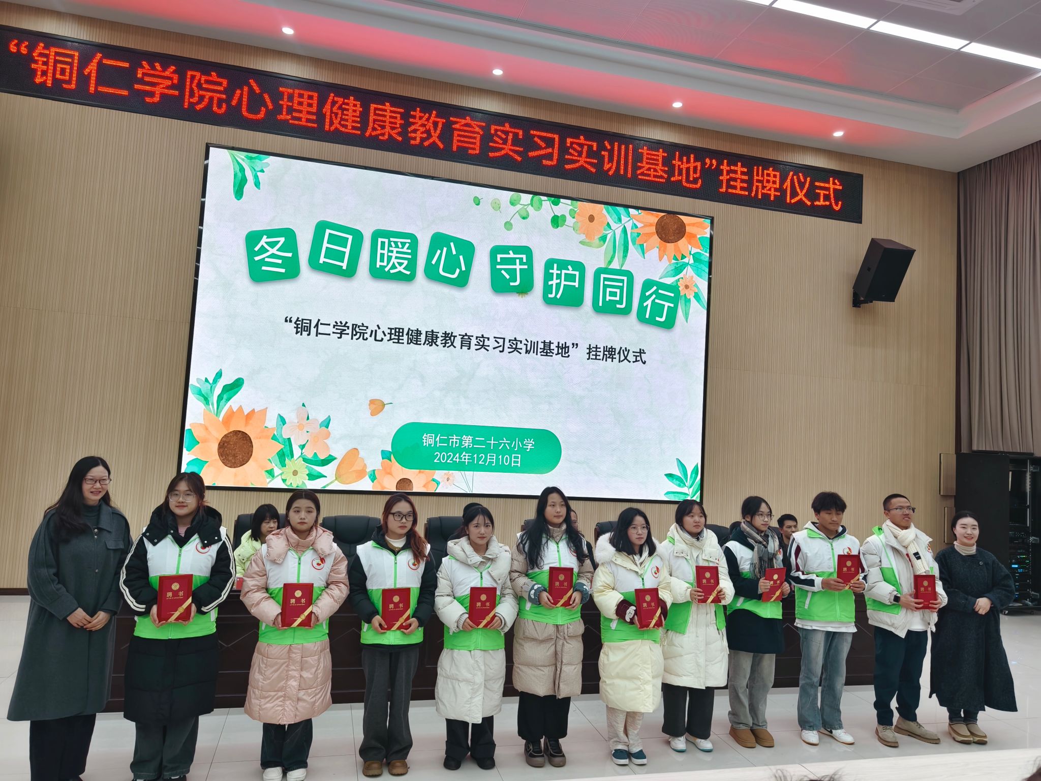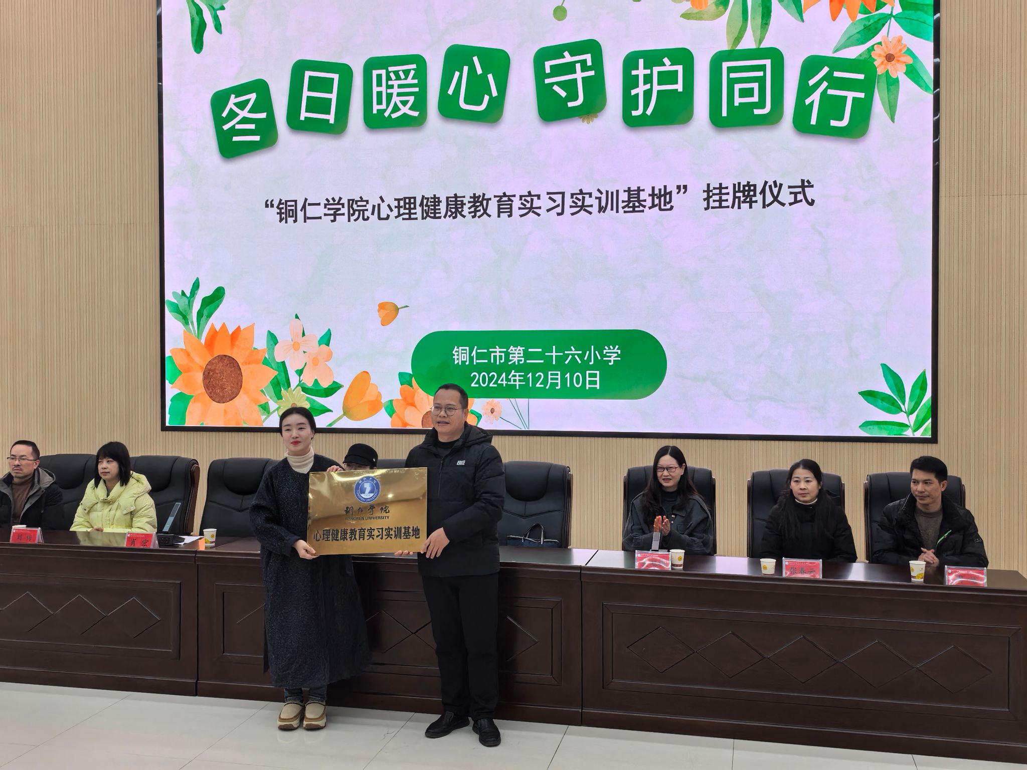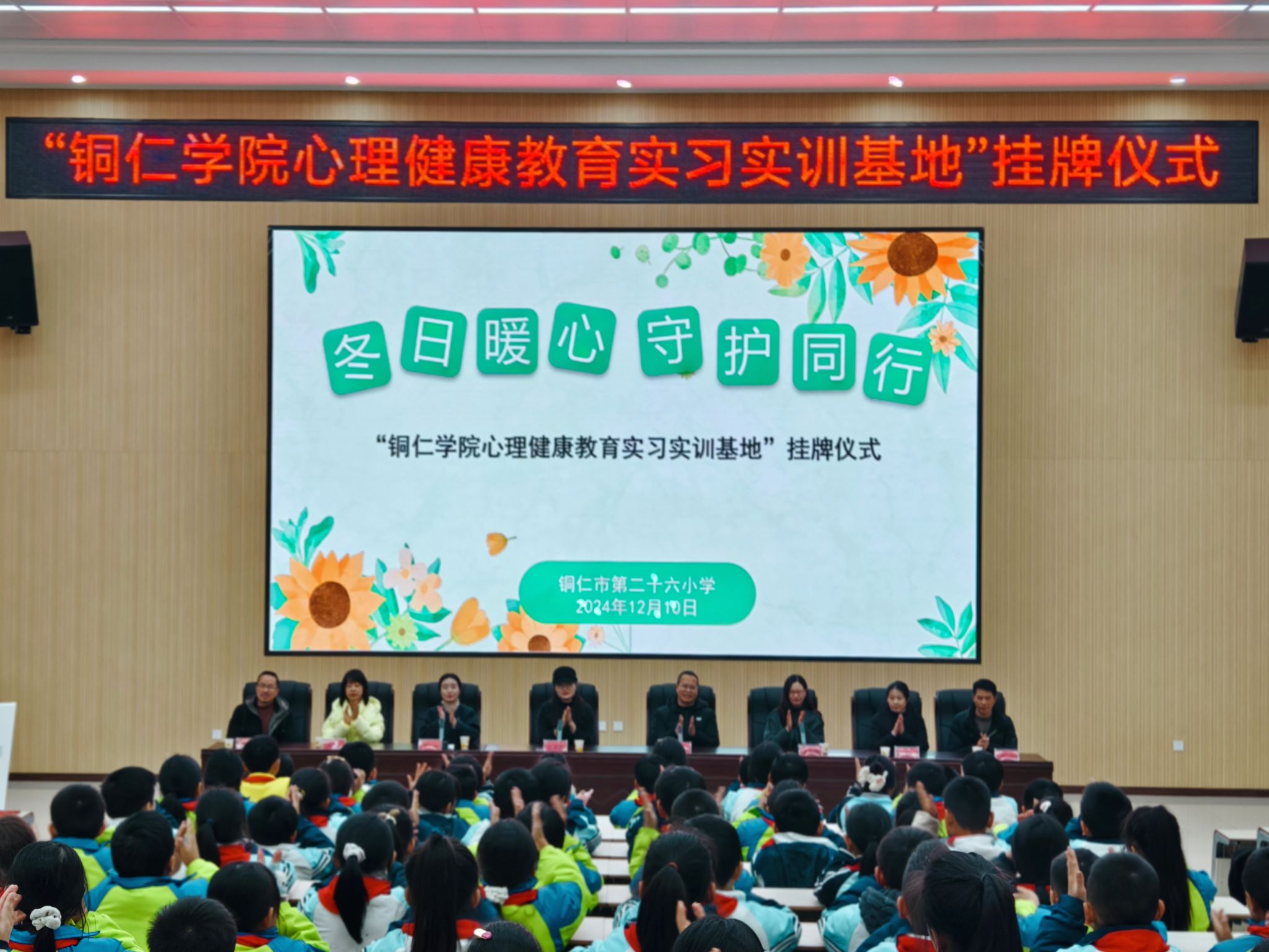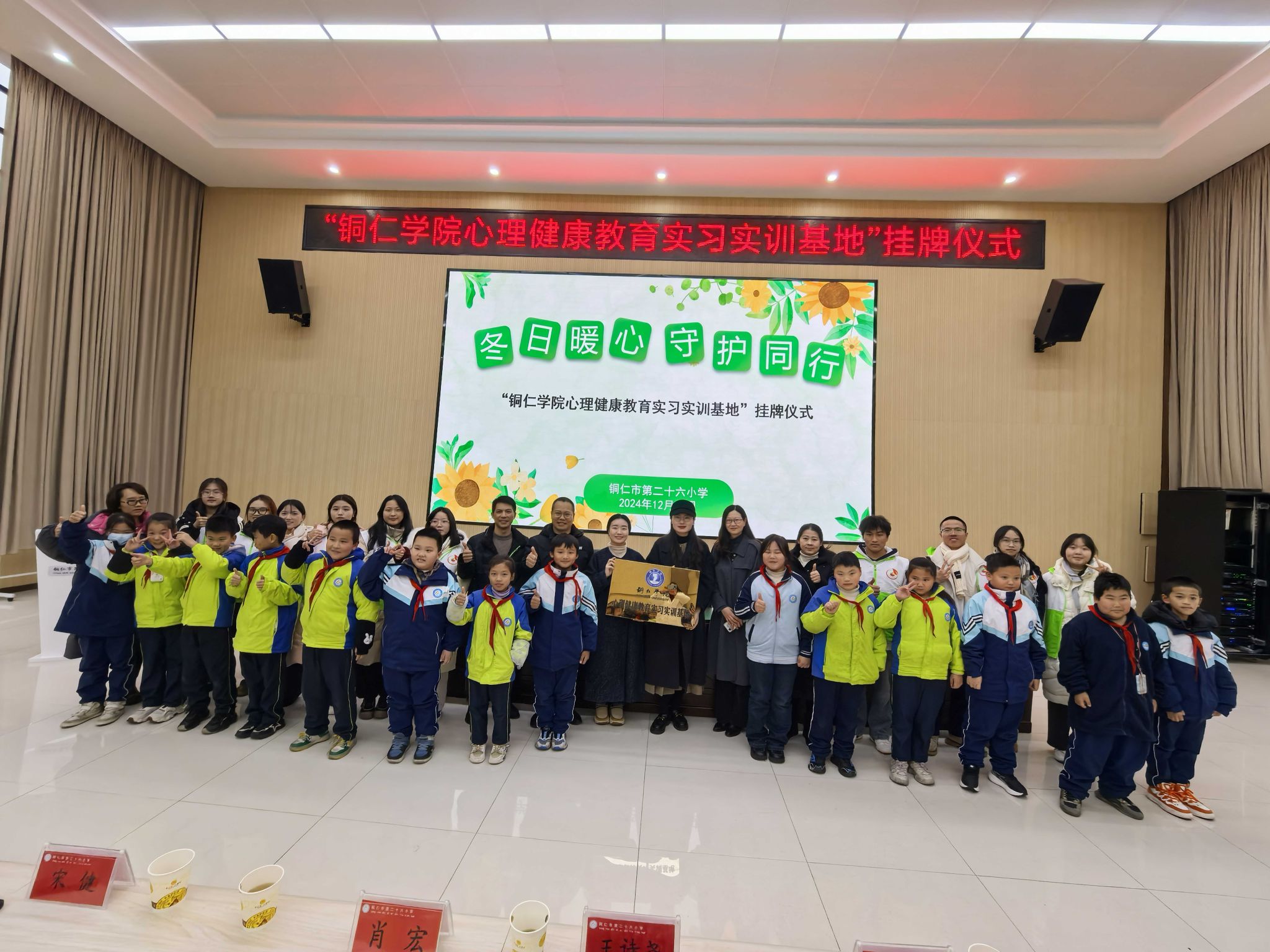 12月10日下午,beat365心理健康教育实习实训基地挂牌仪式在铜仁市第二十六小学举行。碧江区教育局心理教研员吴旭梅,beat365心理健康教育中心主任宋健、教育学院公共教学部主任王诗尧、十位知心哥哥、知心姐姐,以及该校师生200余人参加此次活动,活动由该校刘梅老师主持。