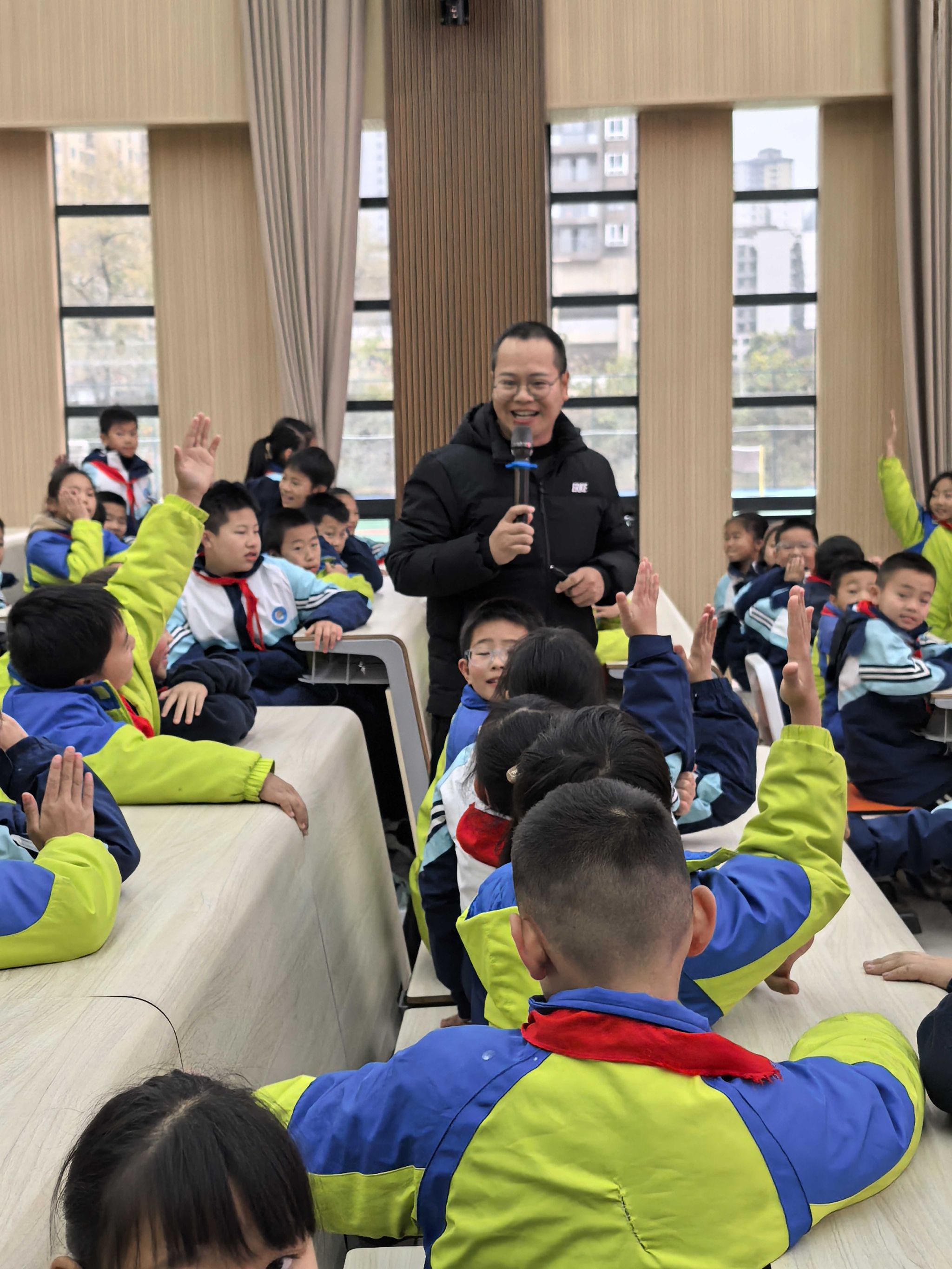 仪式结束后,宋健为该校师生作了题为《做自己心理健康的主人》专题讲座。讲座前的“抓手指”游戏让孩子们激动不已,宋健老师通过介绍有时候我们心情不好的原因、如何维护与调适心理状态,让大家对心理健康教育有了更深刻的理解和认识。他幽默风趣的语言与耐心的解答在互动问答环节更是赢得了孩子们的阵阵掌声,通过情景模拟,让孩子们体验不同情绪的处理方式,他们敢于说真话、说实话、说心里话,这样的方式让他们感到意犹未尽。