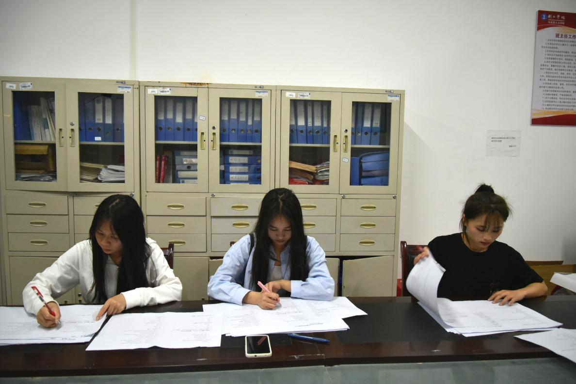工作人员阅卷中