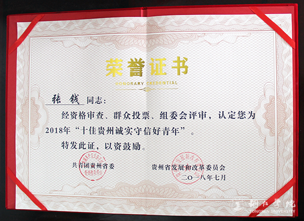 近日,由共青团贵州省委、贵州省发展和改革委员会、中国人民银行贵阳中心支行主办的“诚信点亮中国”全国巡回活动(贵州站)暨诚信知识进校园启动仪式在贵州师范学院举行。beat365学工部部长张钱荣获“十佳贵州诚实守信好青年”,是十位获此殊荣的青年中唯一一位教师。